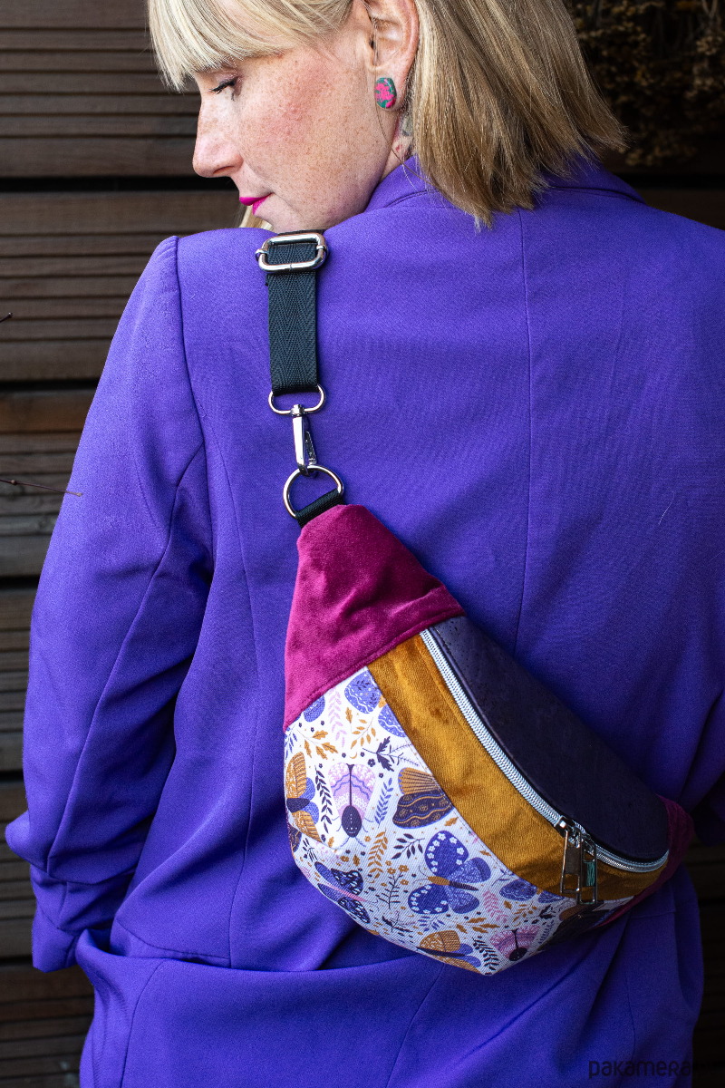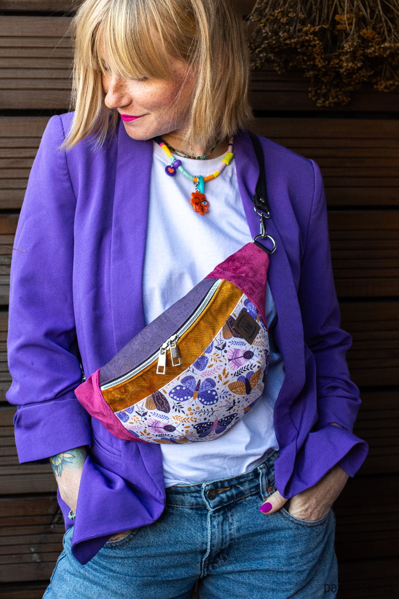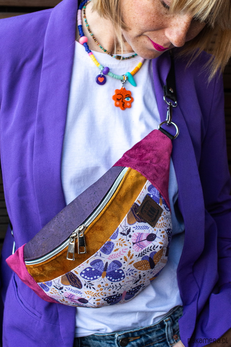 Fioletowa damska nerka saszetka w motyle SKRZYDLATE KWIATY