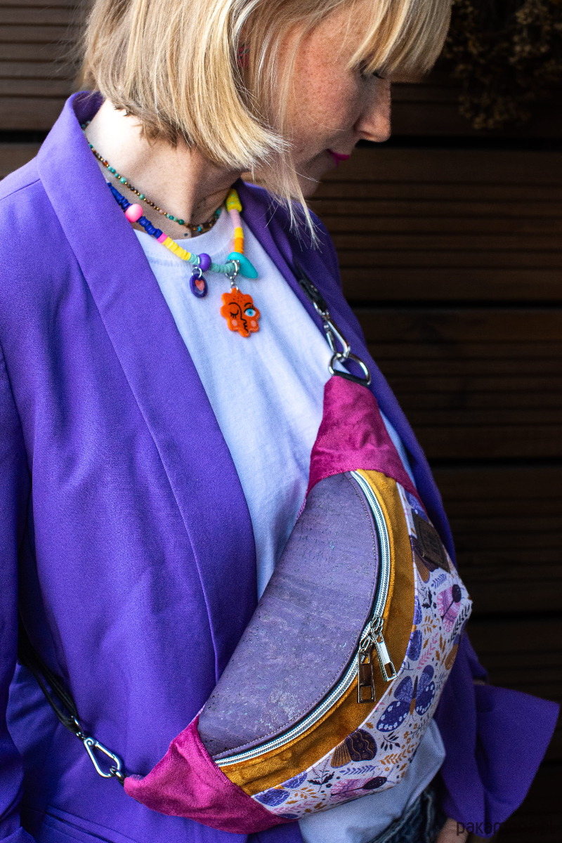 MATERIAŁ: kolorowa tkanina korkowa, tkaniny tapicerskie, wersja z bawełnianą podszewką 125 g/m2, pas samochodowy 25 mm.