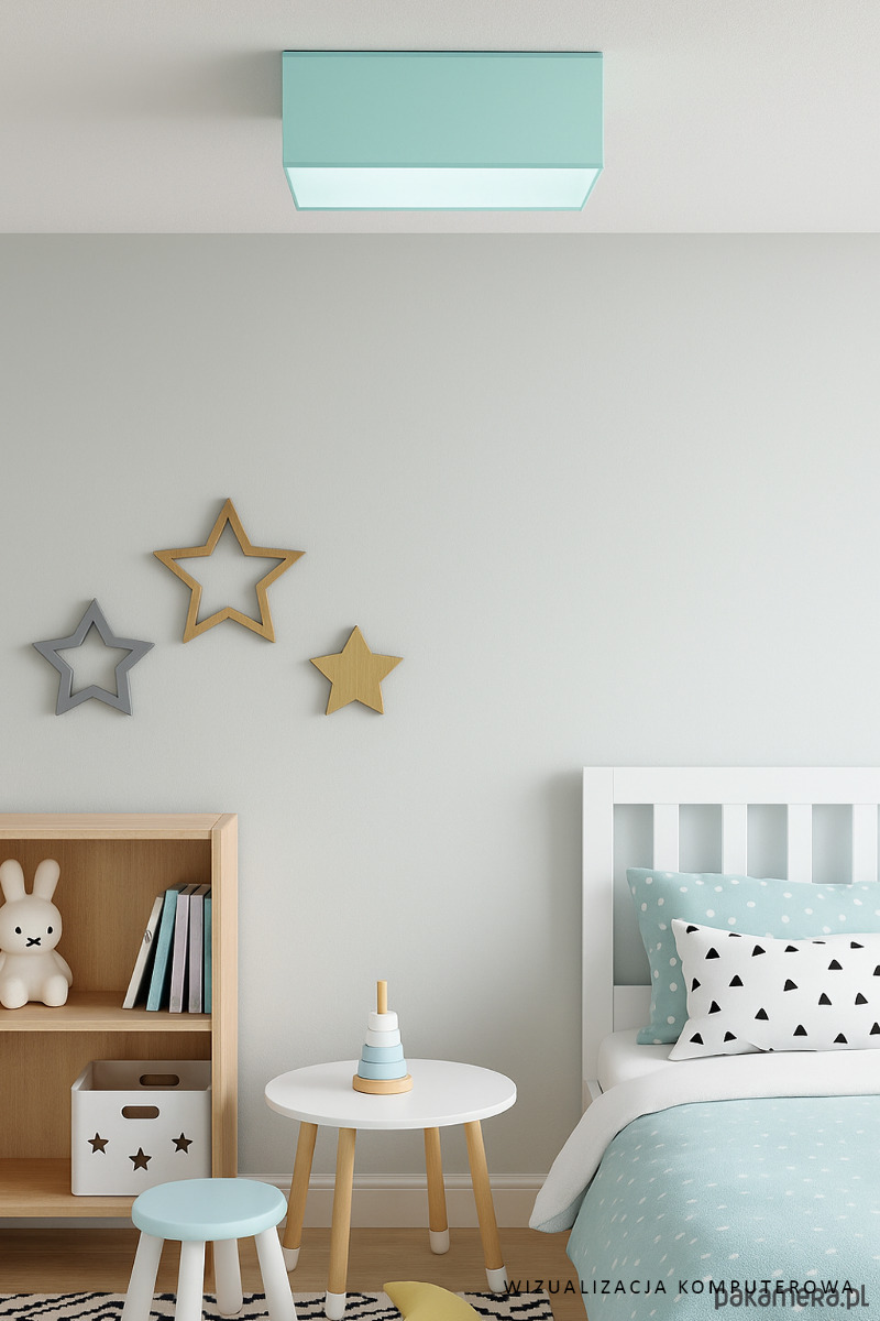 Plafon ALABAMA to znakomita propozycja głównego dystrybutora światła do pomieszczeń dziecięcych. Kwadratowy abażur w pastelowych odcieniach przykuje wzrok każdego domownika. Plafoniera nie tylko w doskonały sposób doświetli całe pomieszczenie oraz udekoruje pokój ale także rewelacyjnie będzie współgrać z dziecięcym umeblowaniem pokoju. Lampa posiada 40 cm szerokości oraz 20 cm wysokości. Atutem lampy sufitowej ALABAMA jest indywidualny dobór ilości źródeł światła (od 1 do 5 żarówek E27) oraz dolnej zabudowy plafonu tzw. denka.