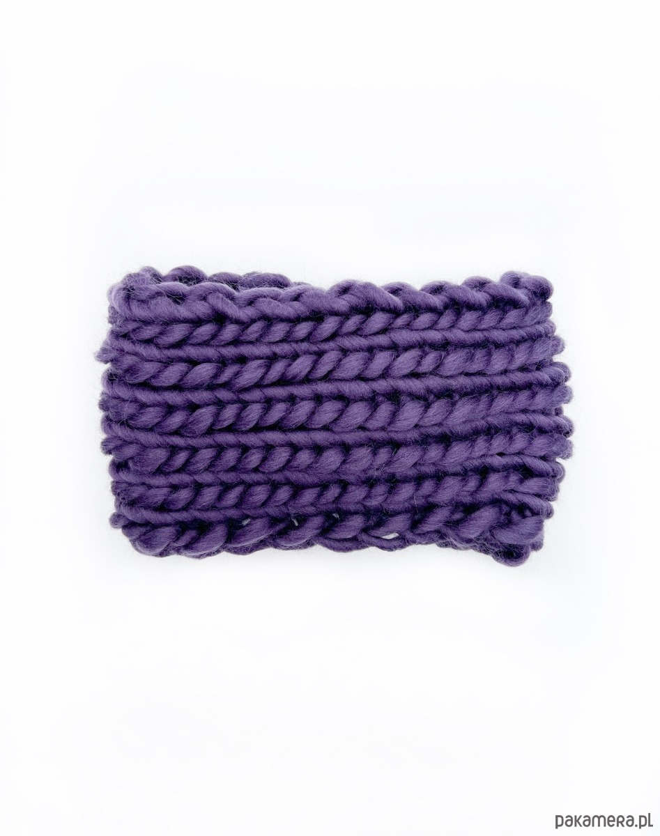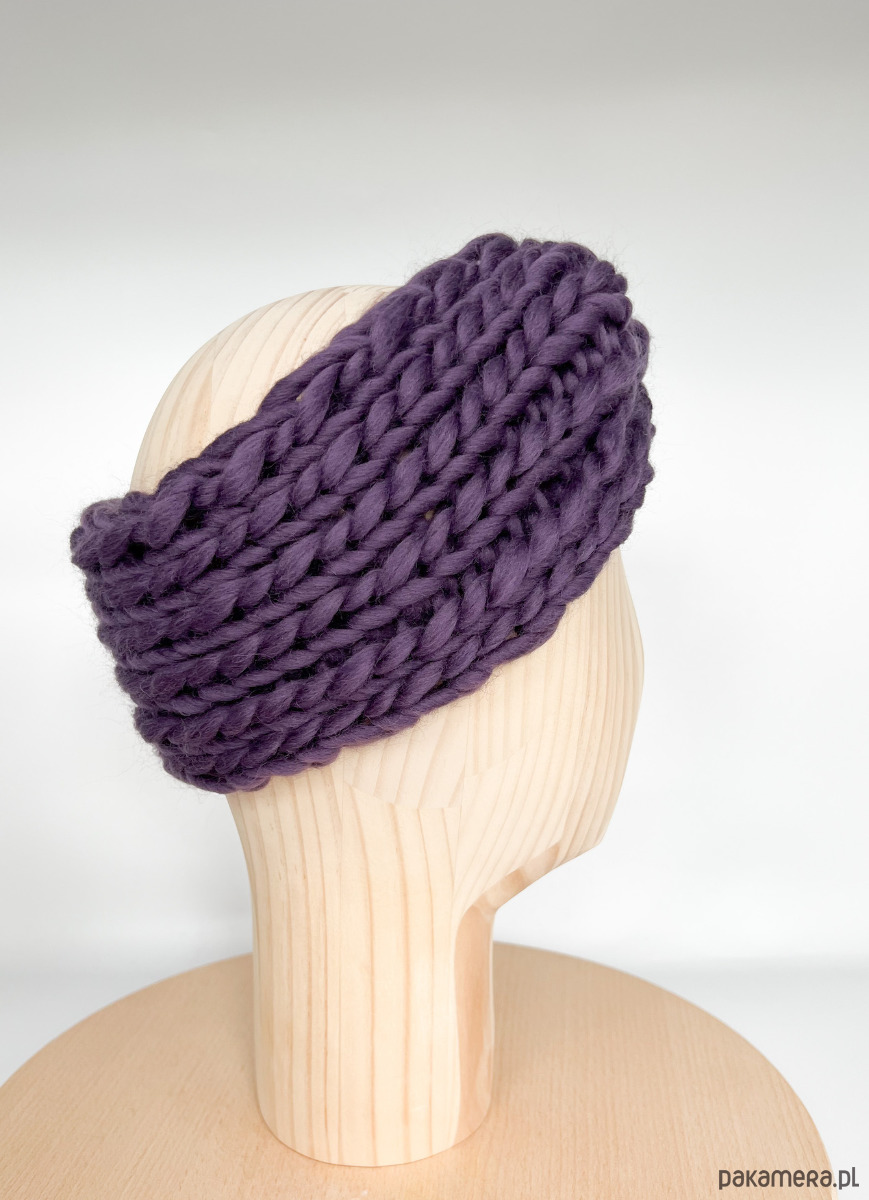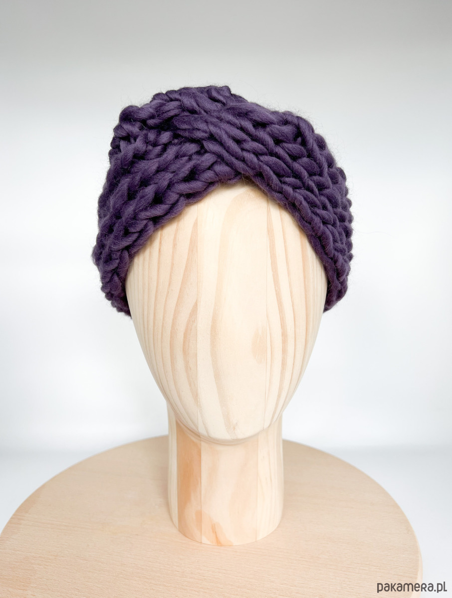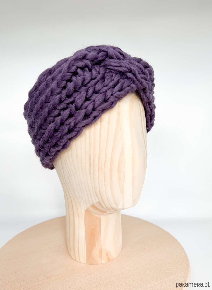 Fioletowa opaska turban z grubej wełny peruwiańskiej
