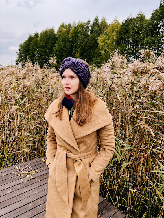 To ekstrawagancki dodatek perfekcyjnie ocieplający uszy i głowę. Wykonałam je grubym splotem, który sprawia, że opaska na czubku głowy przypomina turban. Z powodzeniem zastąpi czapkę.