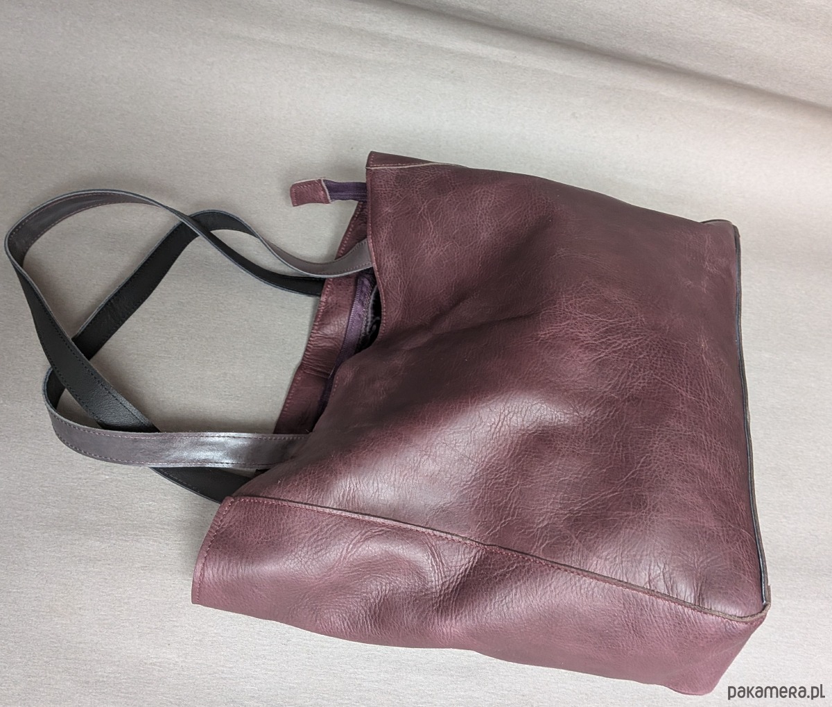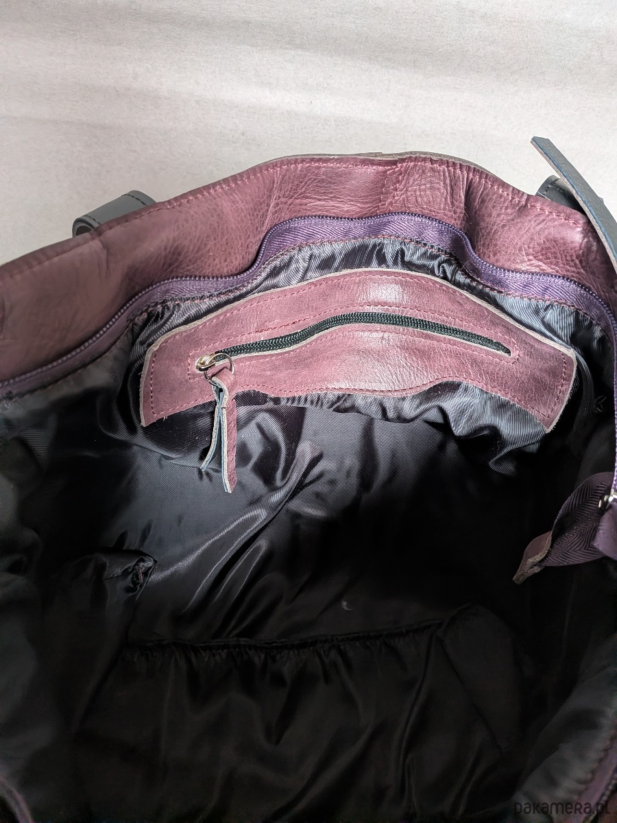 Uszyta ze skóry naturalnej w obłędnie śliwkowym kolorze.