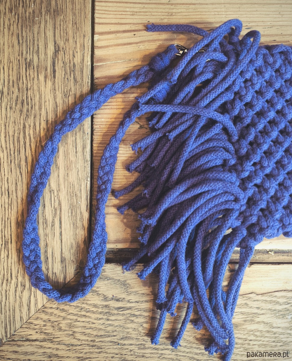 Torebka wykonana z 5 mm bawełnianego sznurka.