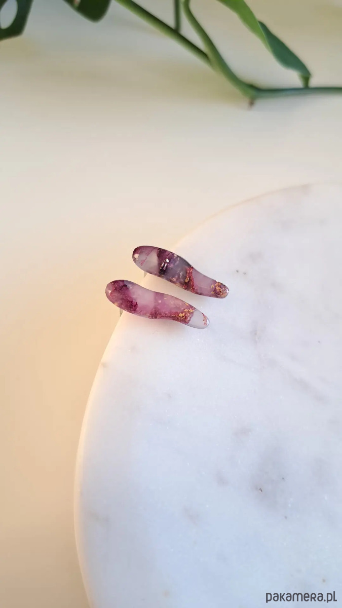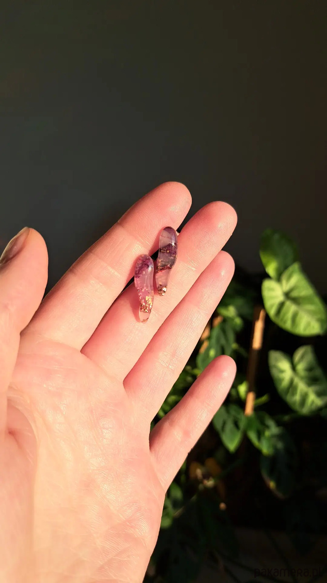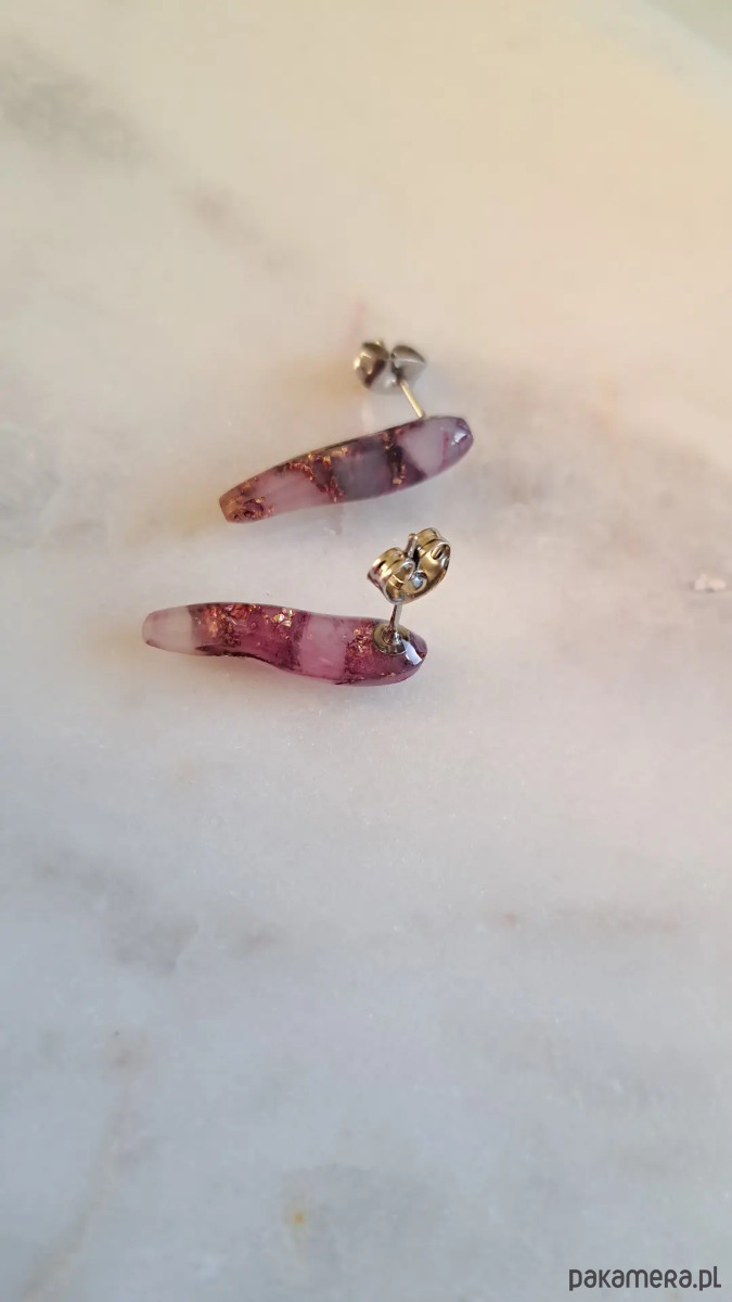 Fioletowe z drobinkami złota kolczyki sztyfty