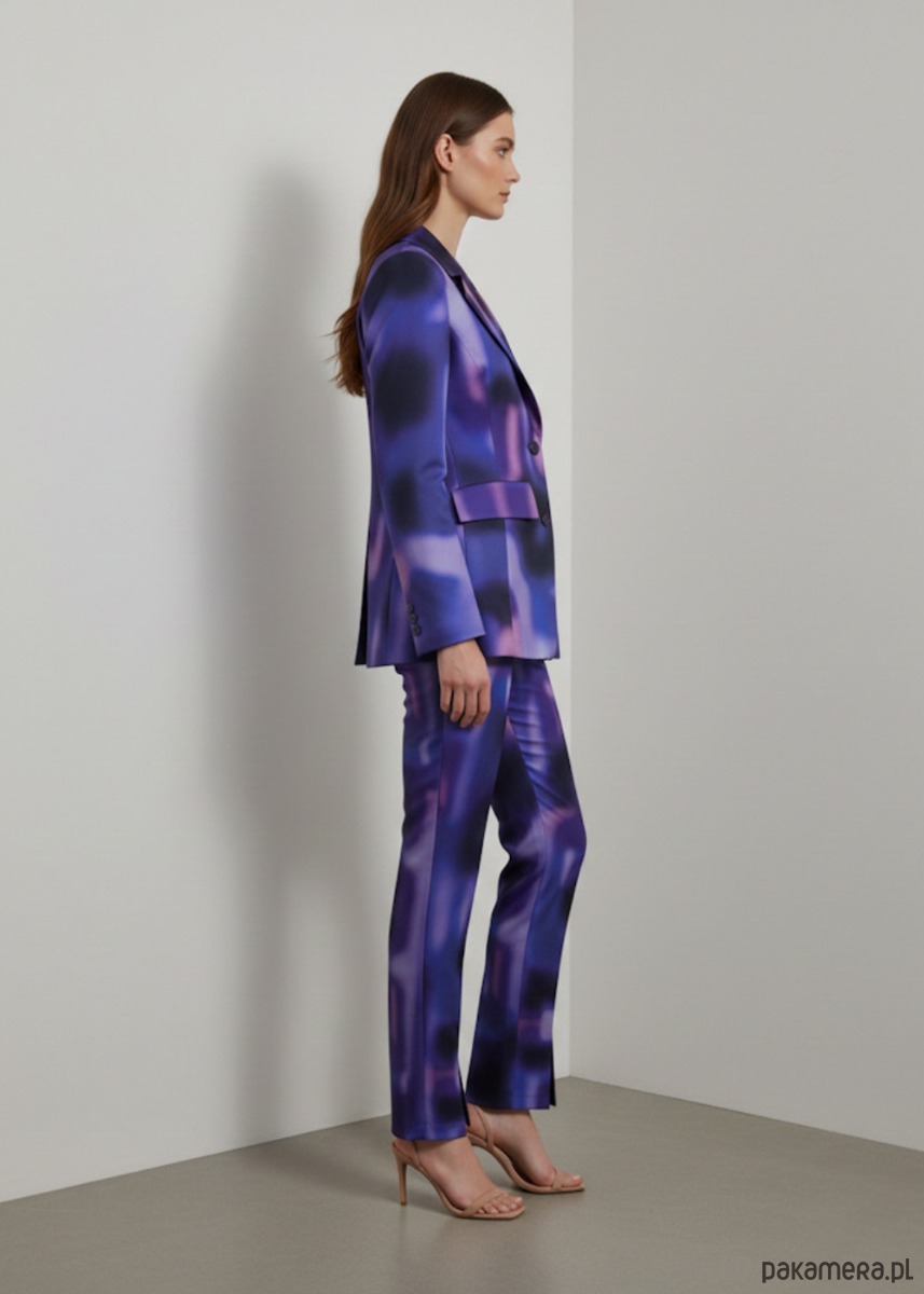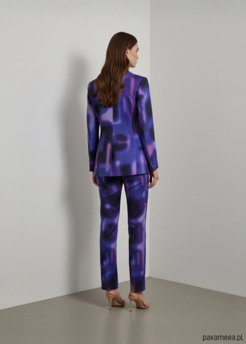 Przedstawiamy Wam nasz fioletowy bawełniany garnitur damski. Przenieś się do artystycznej sfery i poczuj prawdziwą WOLNOŚĆ. Abstrakcyjny wzór sprawi, że Twój look będzie przepełniony fantazją, a luźny krój doda Twojej stylizacji niezwykłej swobody.