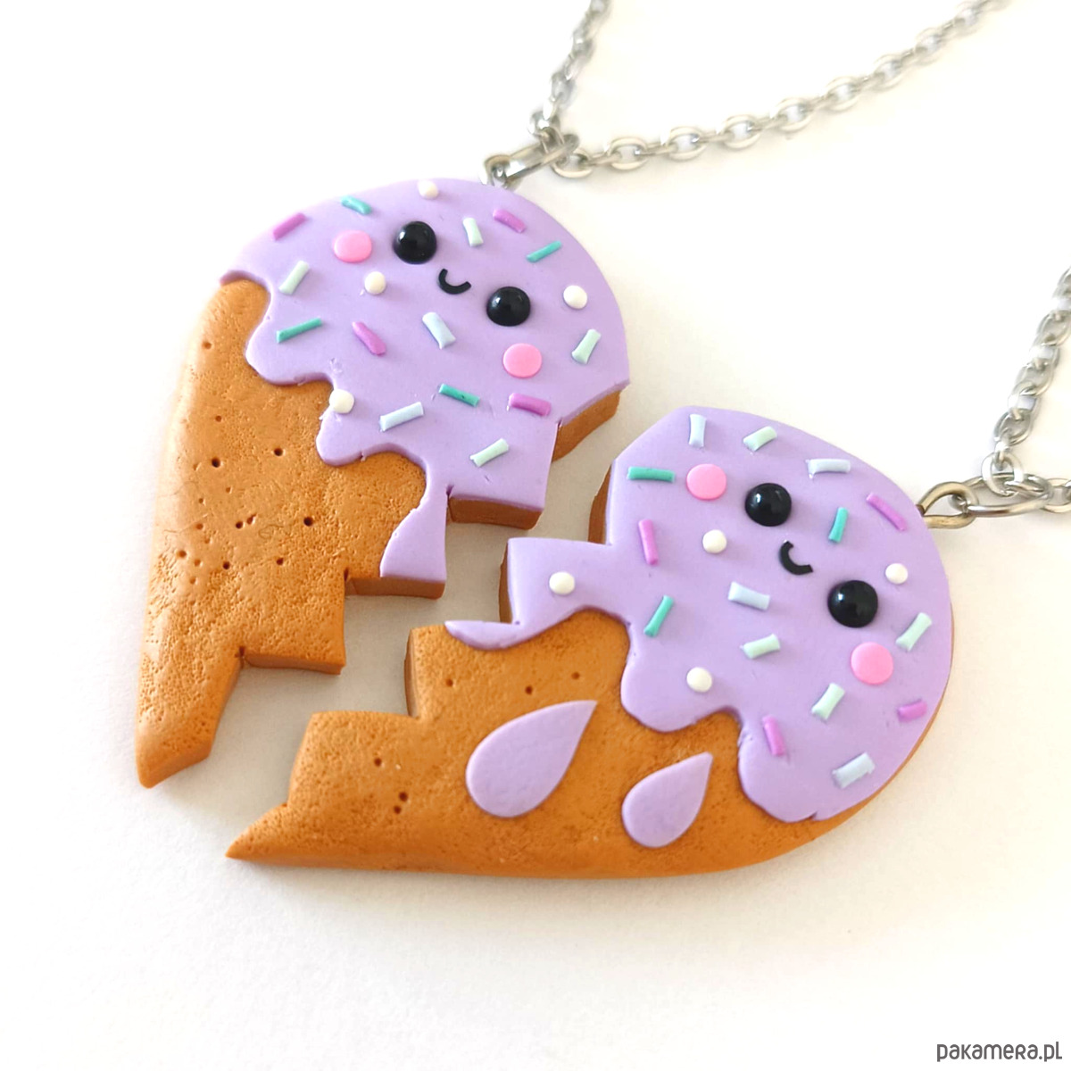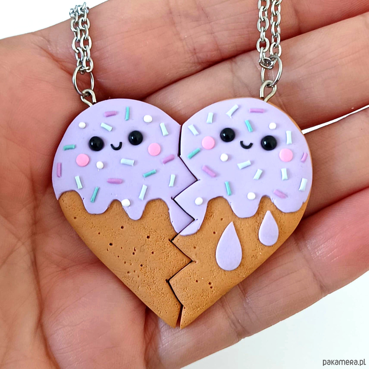 Świętuj słodką przyjaźń z tymi uroczymi naszyjnikami w kształcie dwóch połówek serduszka – to idealny prezent BFF dla dziewczyn, które trzymają się razem jak posypka i lukier!