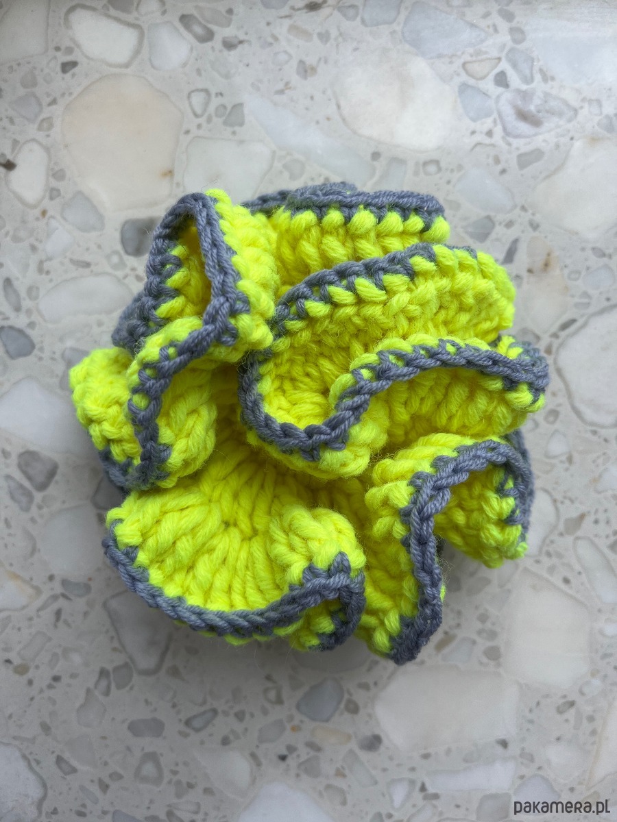 Fiorka to pokaźnych rozmiarów ozdoba do włosów. Znacznie więcej niż scrunchie. Wykonana ręcznie z włóczki. Wabi intensywnymi kolorami. Najlepiej czuje się na kucykach, kokach i warkoczach, ale świetnie wygląda też na nadgarstku :) Ten egzemplarz ma piękny kolor brudnego beżu z pomarańczowym wykończeniem. Jeżeli masz swoje ulubione kolory i chciałabyś mieć personalizowaną fiorkę, daj znać, mogę spróbować ją wykonać.