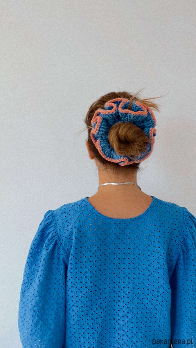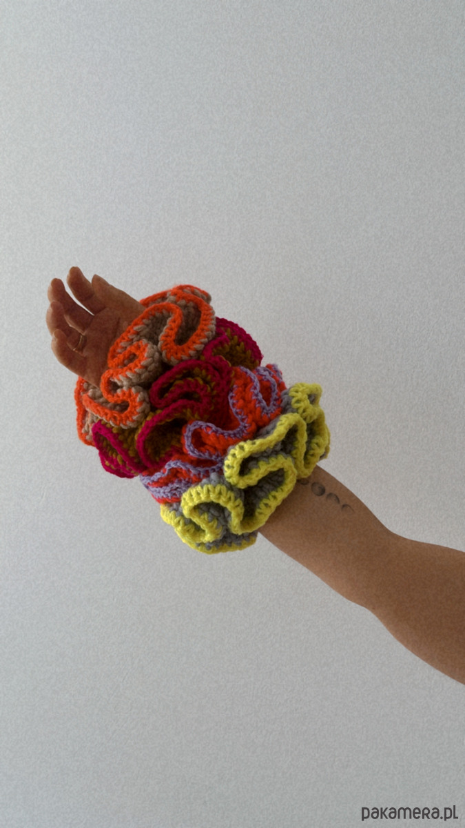 Fiorka to pokaźnych rozmiarów ozdoba do włosów. Znacznie więcej niż scrunchie. Wykonana ręcznie z włóczki. Wabi intensywnymi kolorami. Najlepiej czuje się na kucykach, kokach i warkoczach, ale świetnie wygląda też na nadgarstku :) jest bardziej ozdobą niż gumką samą w sobie. Zakłada się ją na gotowy kucyk lub koczek. Jeżeli masz swoje ulubione kolory i chciałabyś mieć personalizowaną fiorkę, daj znać, mogę spróbować ją wykonać.