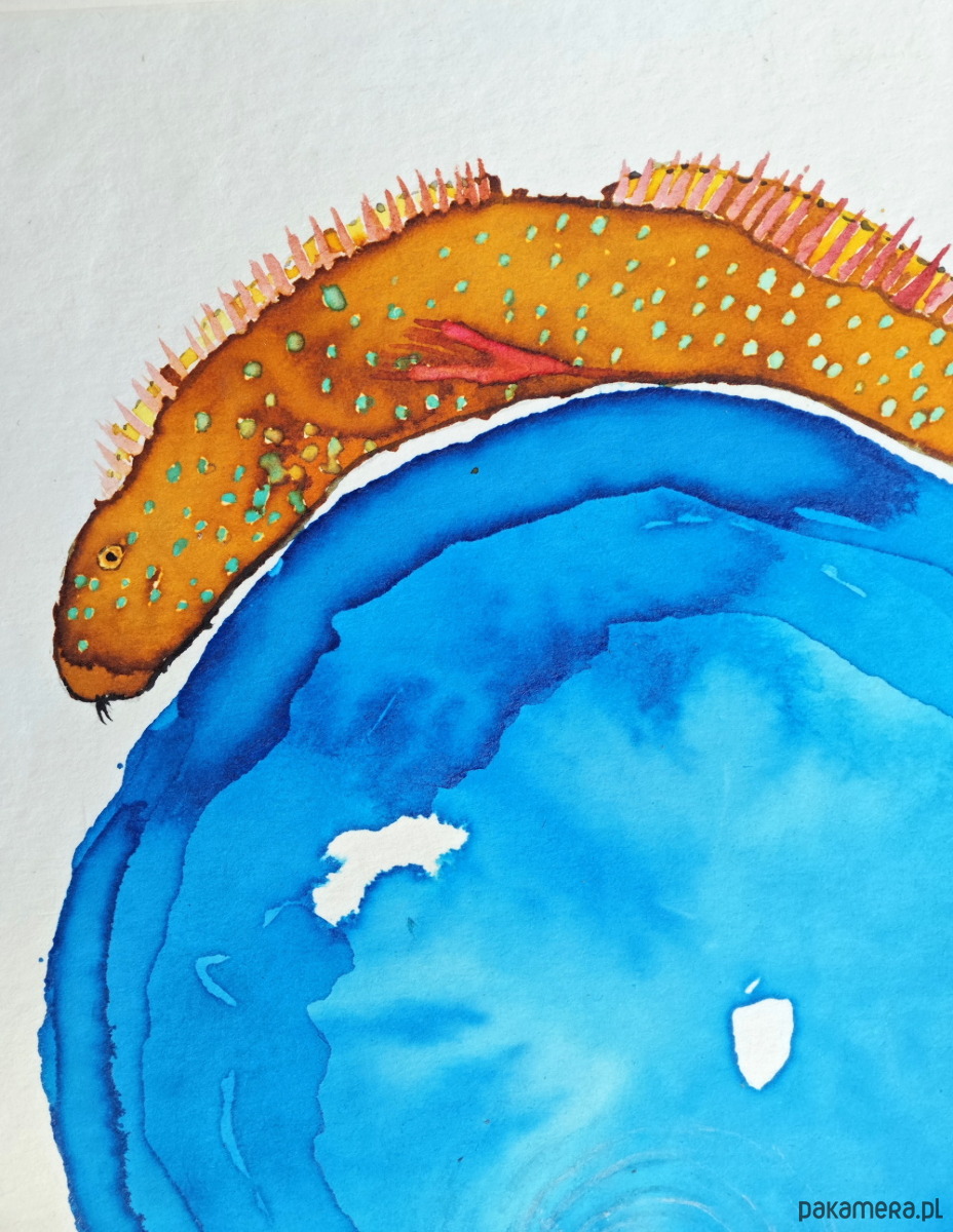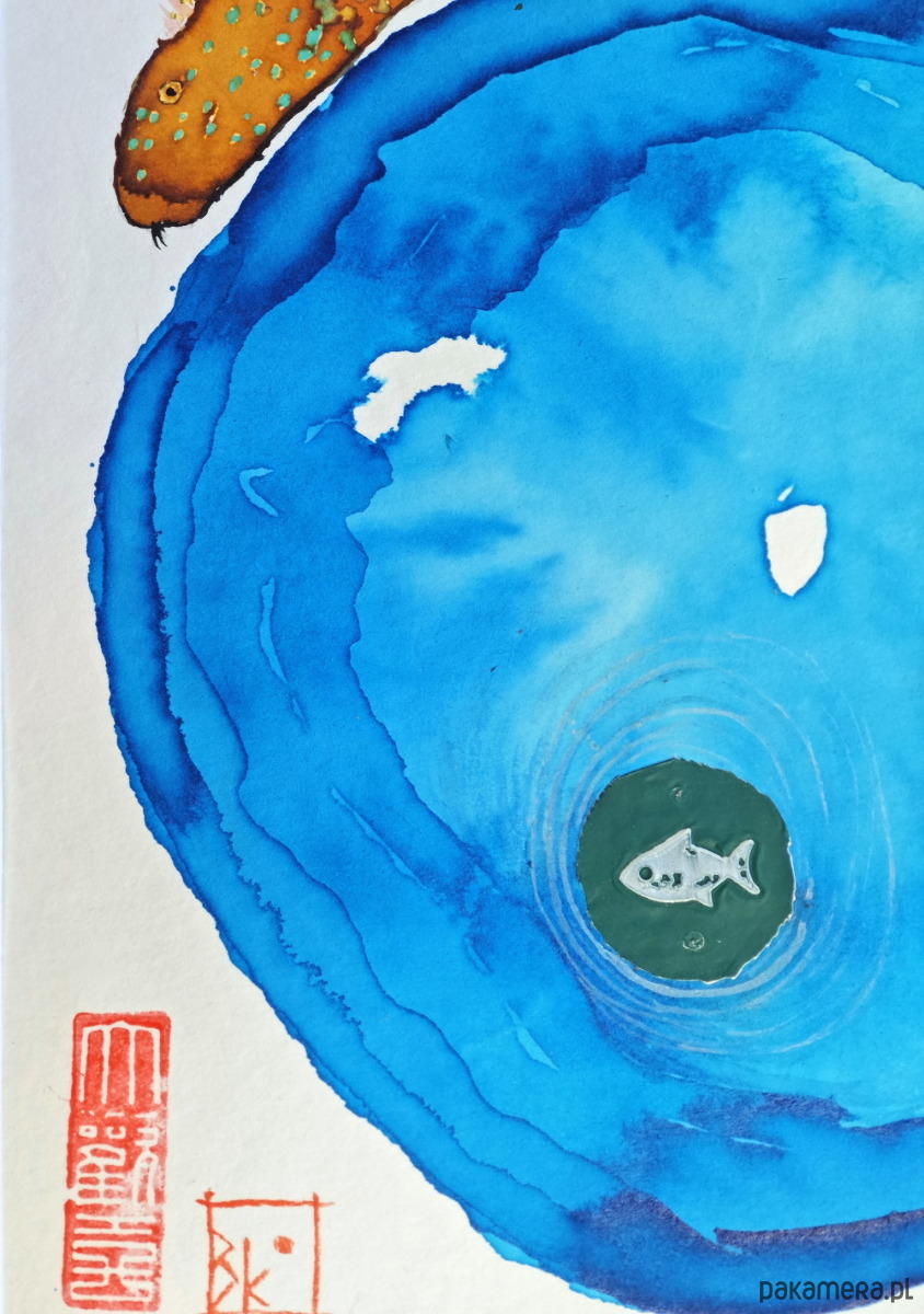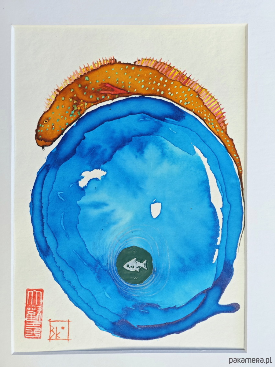 namalowana przeze mnie akwarela i tusz, collage, papier kwasowy, temat rybny - mój ulubiony:) rozmiar A4 razem z paspartou; bez ramki. 😊polecam. wysyłka dpd
