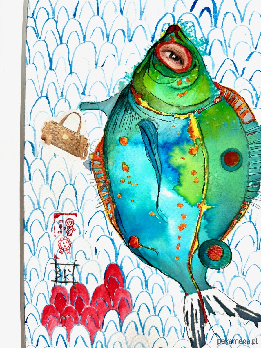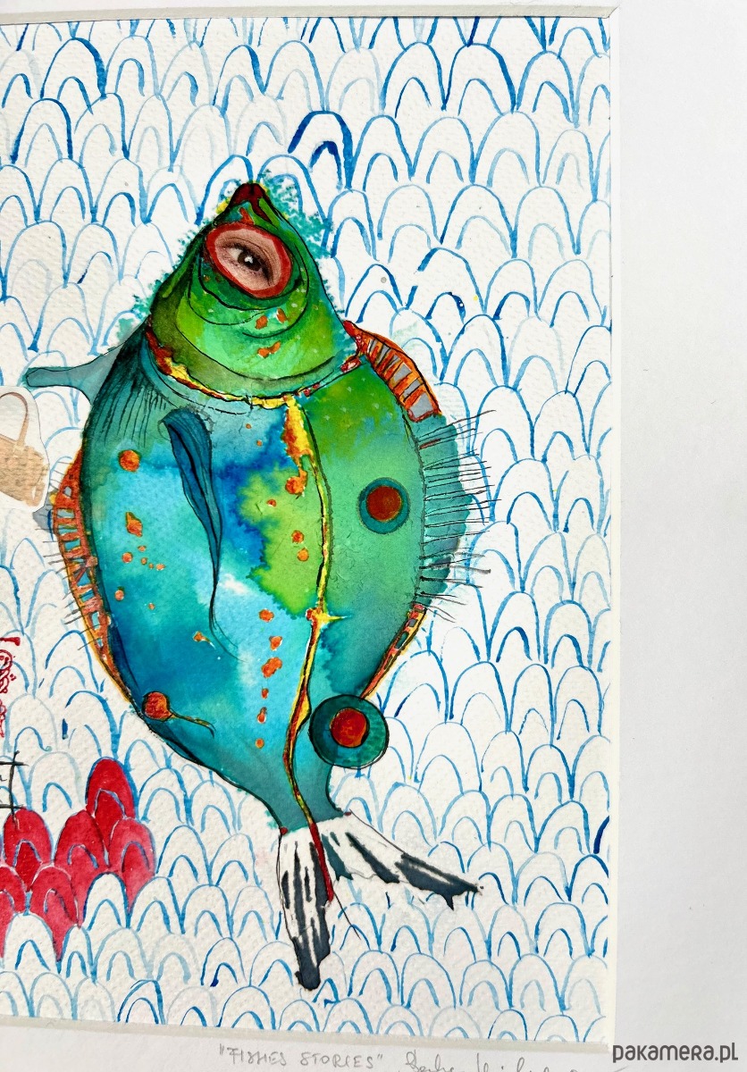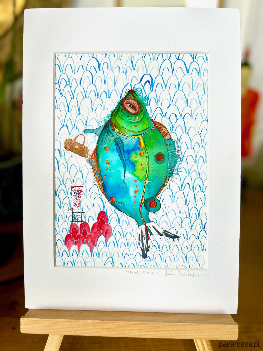 namalowana przeze mnie akwarela, papier kwasowy, temat rybny - mój ulubiony:) rozmiar A4 razem z paspartou; bez ramki. 😊polecam