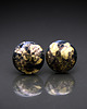Ceramiczne okrągłe kolczyki, ręcznie wykonane z delikatnej gliny kamionkowej, jednostronnie szkliwione czarnym błyszczącym szkliwem, dekorowane złotem naszkliwnym, na antyalergicznych sztyftach w kolorze srebrnym. Średnica ok. 16mm. Polecam