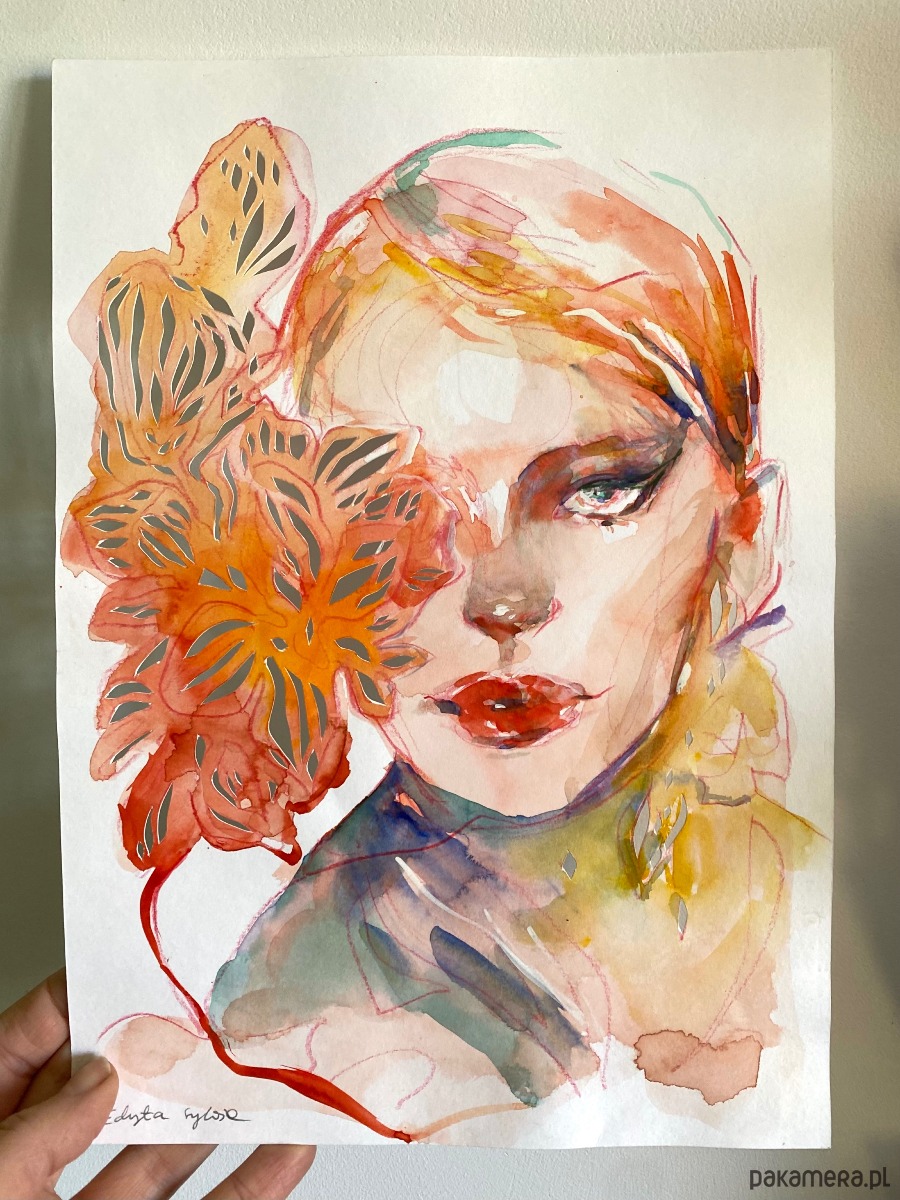 Oryginalna akwarela i wycinanka – unikatowy portret w technice mixed media