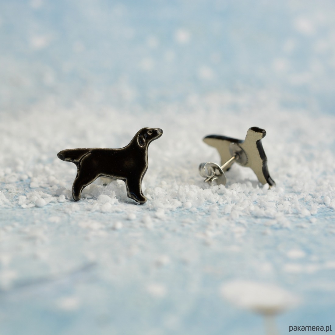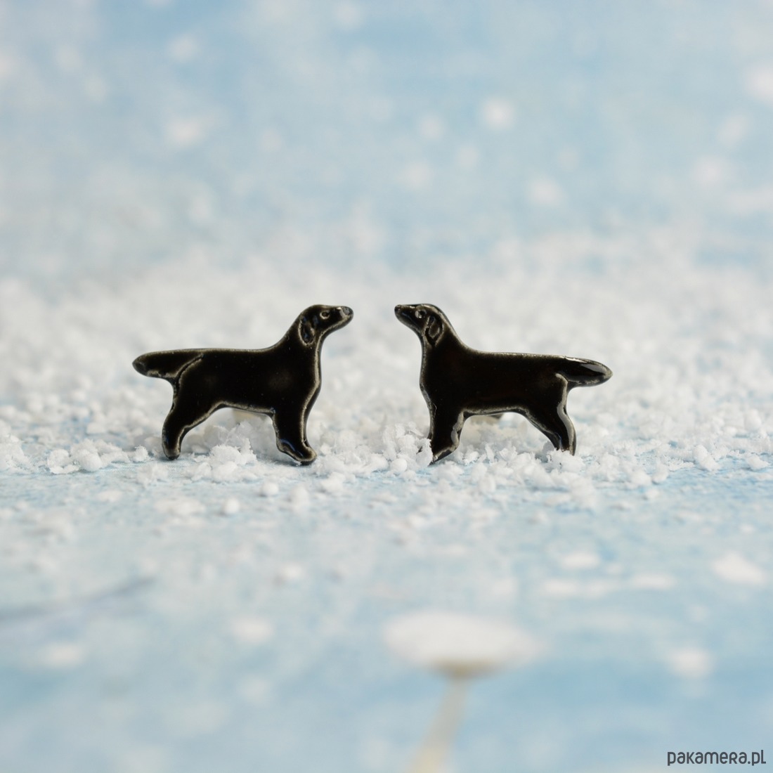 Idealny dodatek dla miłośników tej rasy:)))) Malutkie czarne psiaki mają rozmiary: 1,5cm wysokość, 2cm szerokość, 1,5mm grubość. Są lekkie, a ostatnie zdjęcie prezentuje przykładową parę na modelce. Kolczyki wykonuję od podstaw ręcznie:) Każda para jest inna:)))) Flaty zostały solidnie umocowane na sztyftach ze stali chirurgicznej- antyalergiczna w kolorze oksydowanego srebra. Wysyłam w ozdobnym pudełeczku.