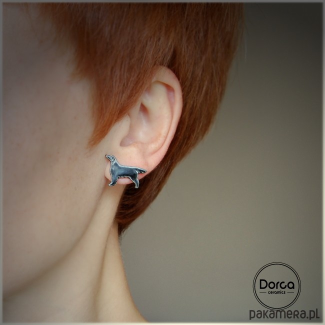 Idealny dodatek dla miłośników tej rasy:)))) Malutkie czarne psiaki mają rozmiary: 1,5cm wysokość, 2cm szerokość, 1,5mm grubość. Są lekkie, a ostatnie zdjęcie prezentuje przykładową parę na modelce. Kolczyki wykonuję od podstaw ręcznie:) Każda para jest inna:)))) Flaty zostały solidnie umocowane na sztyftach ze stali chirurgicznej- antyalergiczna w kolorze oksydowanego srebra. Wysyłam w ozdobnym pudełeczku.