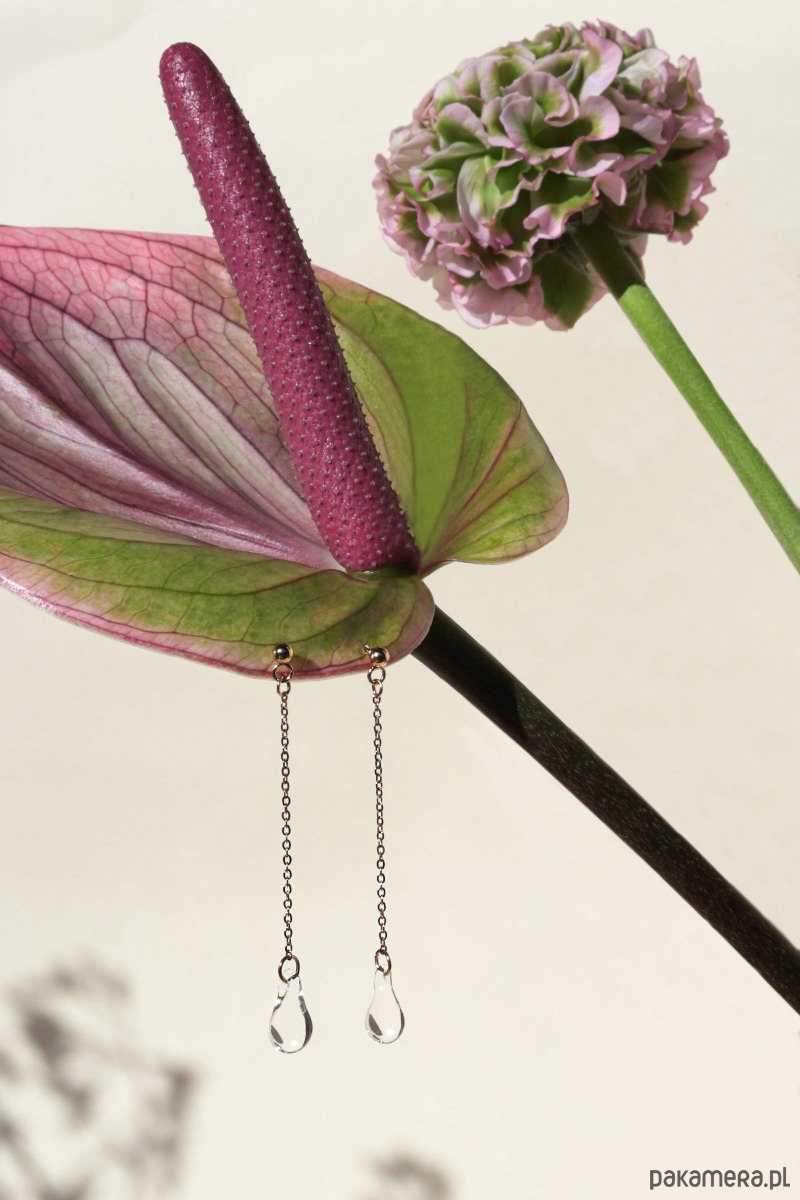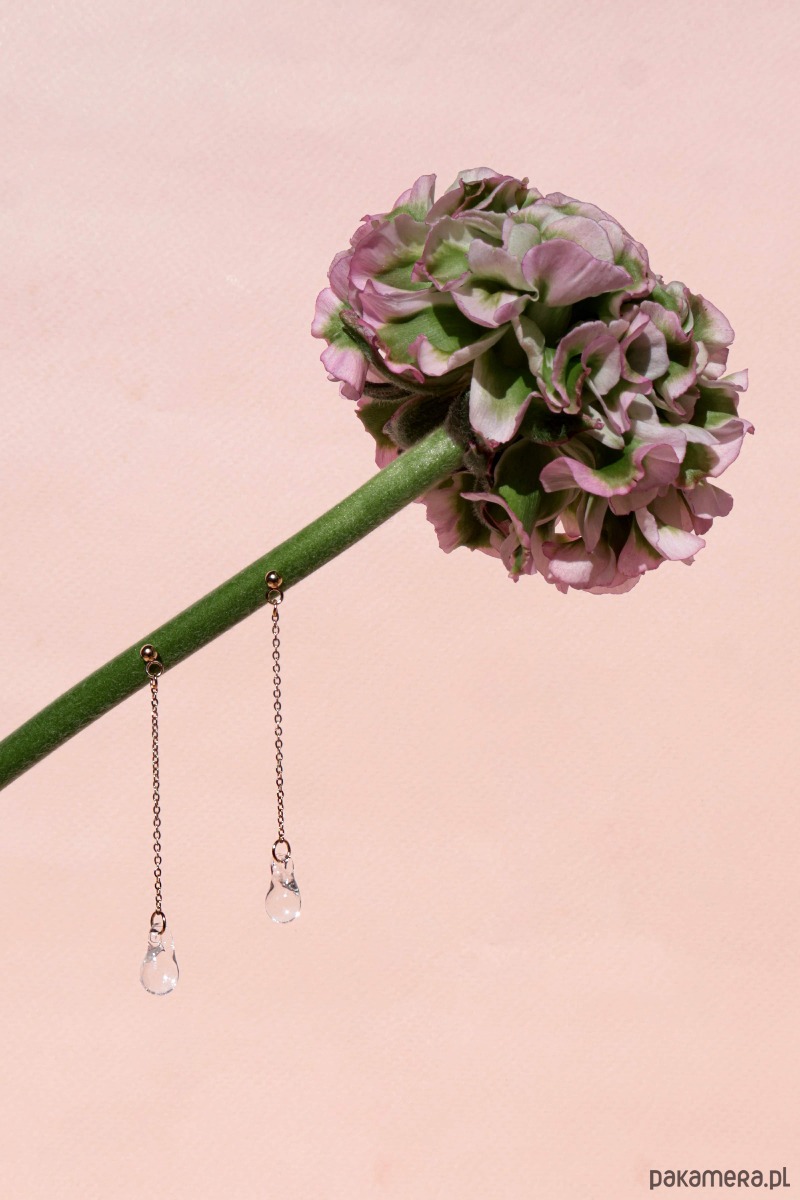 Długość łańcuszka, na którym zawieszona jest szklana kropla: ok. 4 cm