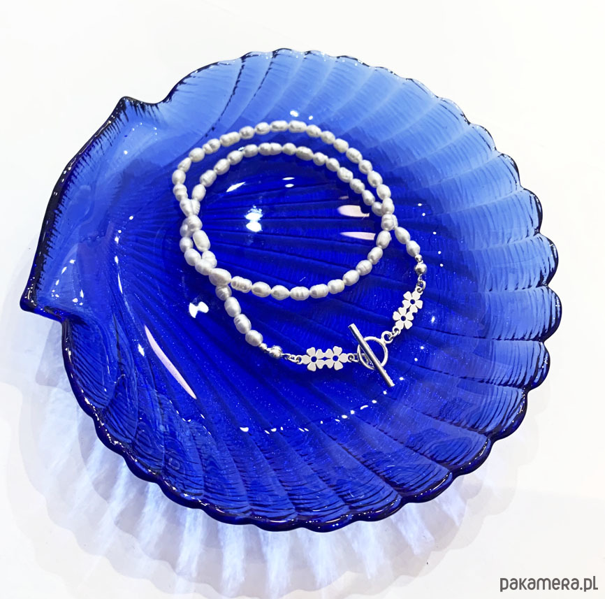Flora- Naszyjnik- Perły- Niezapominajka