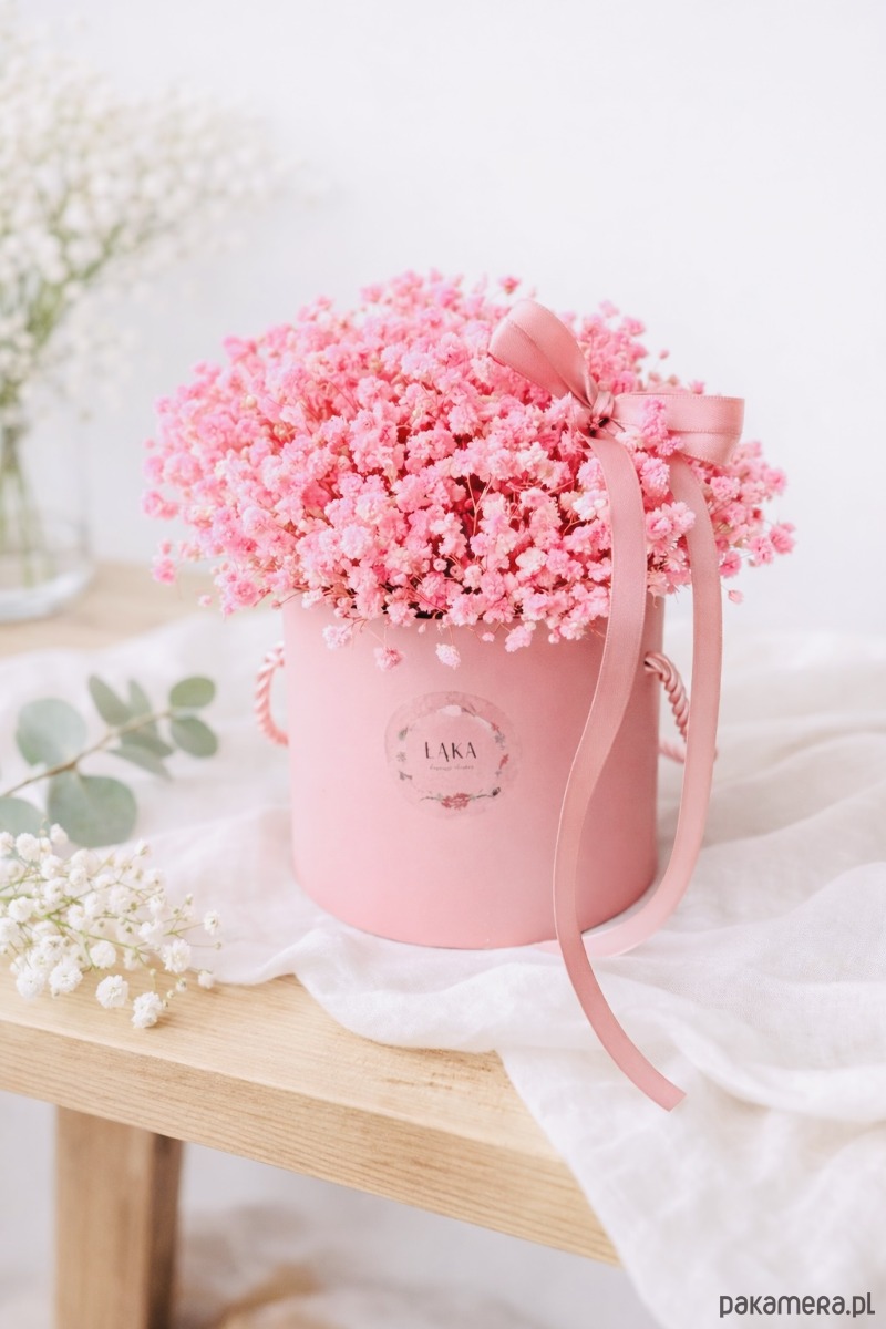 Flowerbox z gipsówką stabilizowaną, cukierkowy róż.