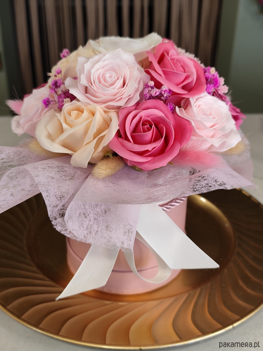 Flowerbox mydlany na prezent dla mamy siostry przyjaciółki