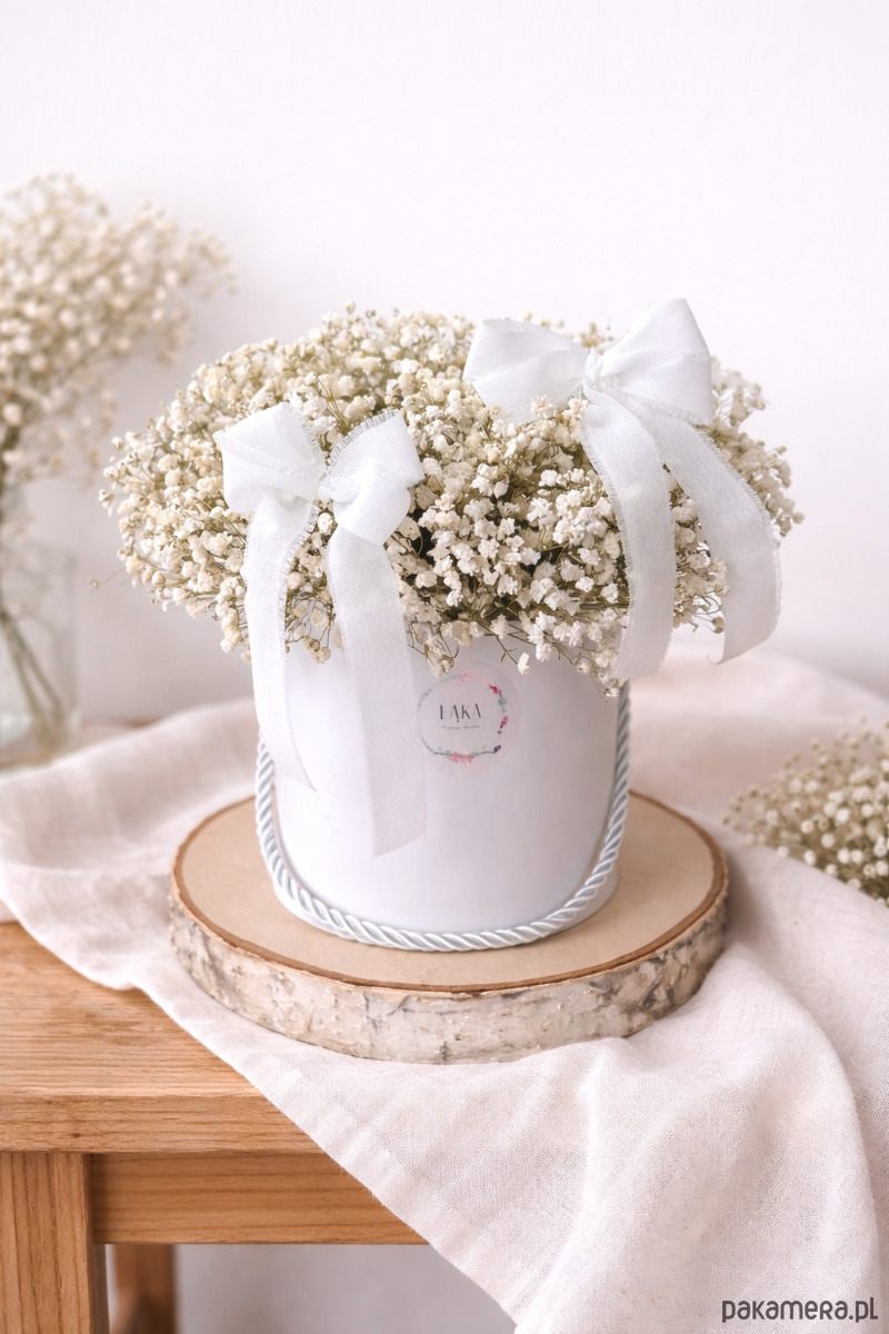 Flowerbox z gipsówką stabilizowaną, w naturalnym odcieniu 🌸