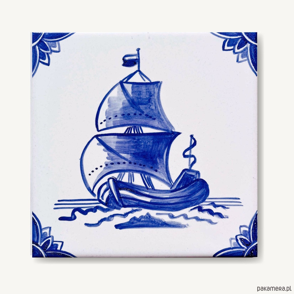 Każdy kafelek maluję ręcznie więc nie znajdziesz dwóch identycznych. Widoczne są pociągnięcia pędzla i drobne różnice w odcieniach.