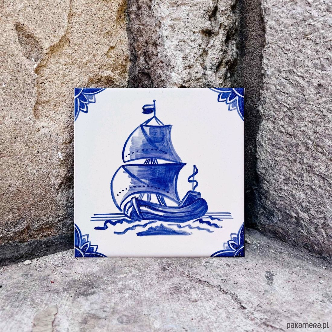 Kafelek ze statkiem w stylu holenderskim, ręcznie namalowany, niebieski bo w niebieskościach wszystko wygląda najlepiej :)