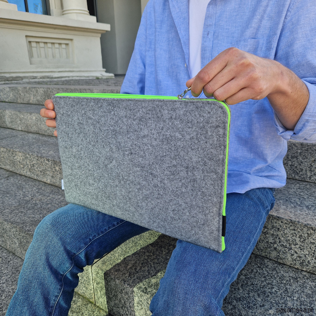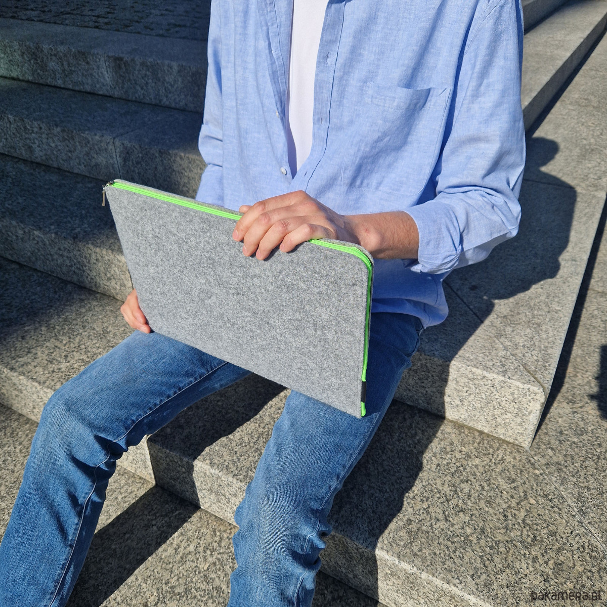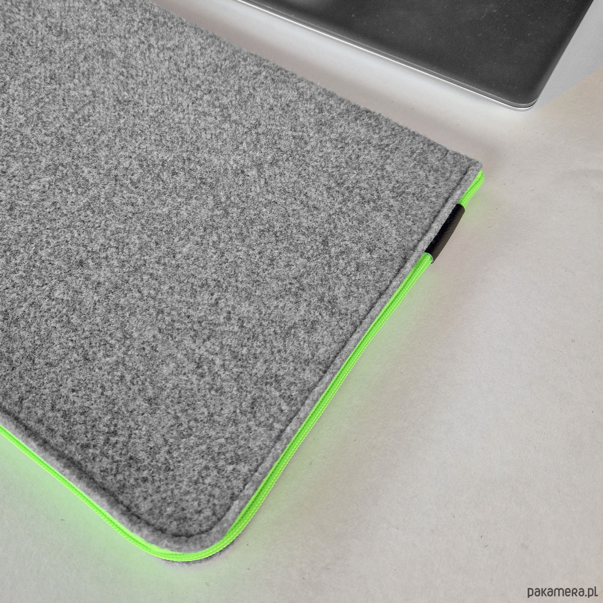 FLUO ZIELONY zamek etui z filcu na laptopa