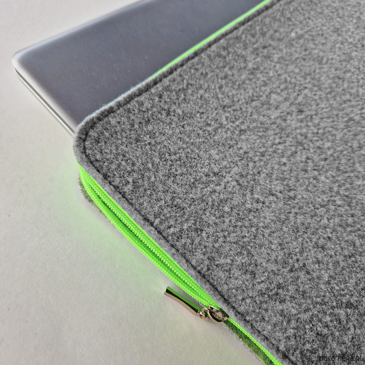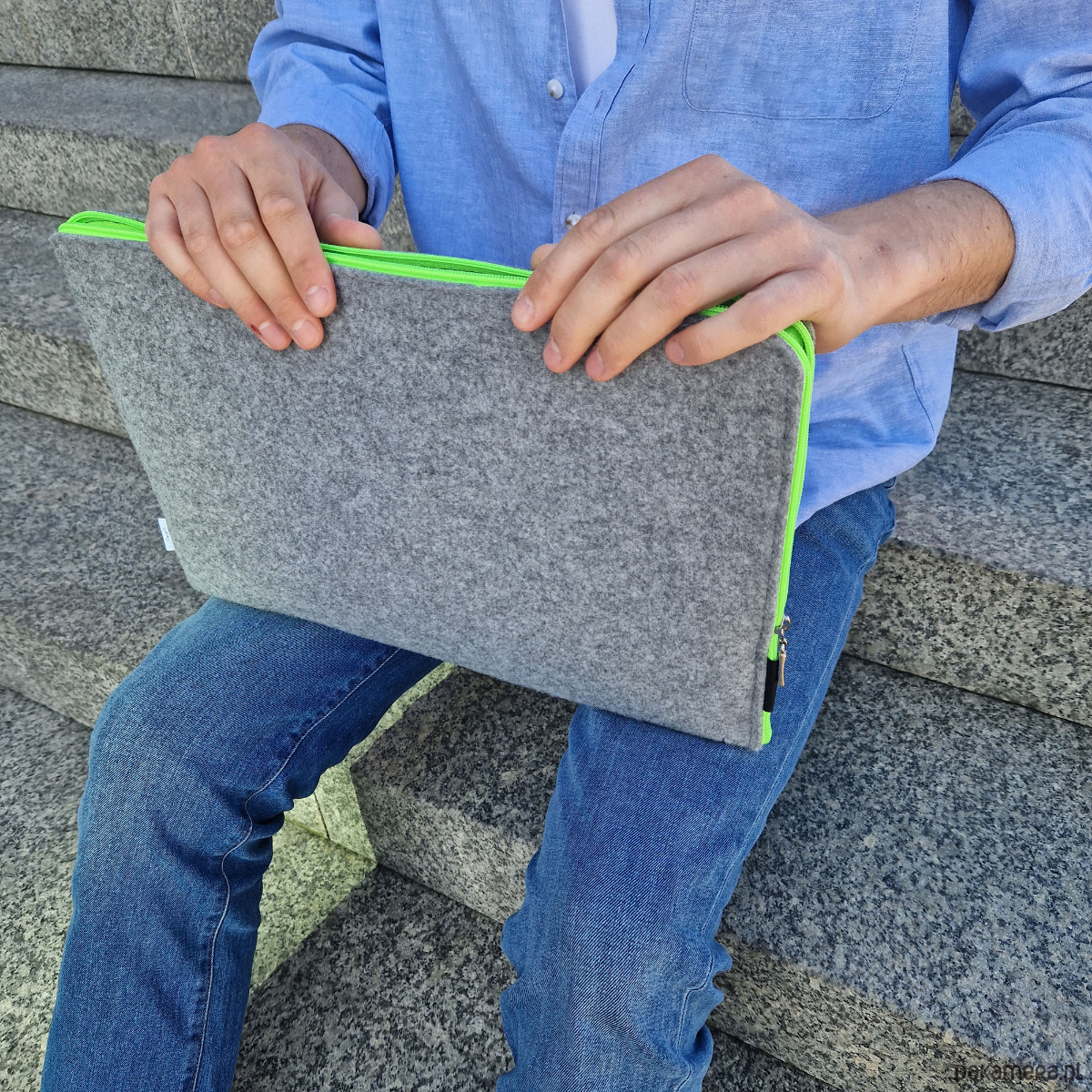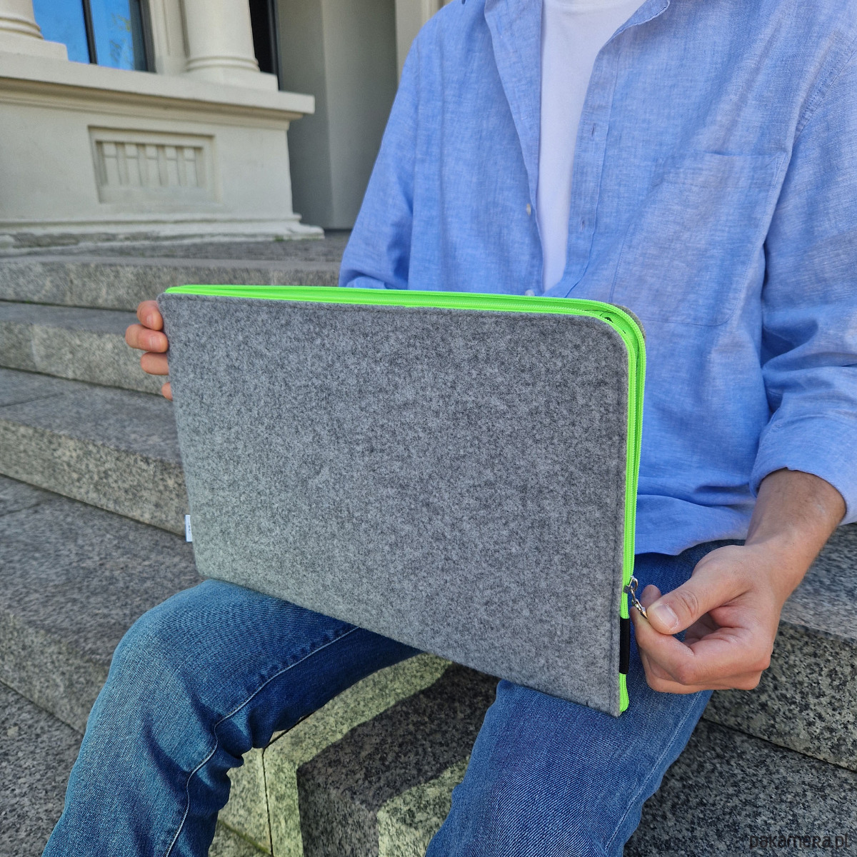 FLUO ZIELONY zamek etui z filcu na laptopa