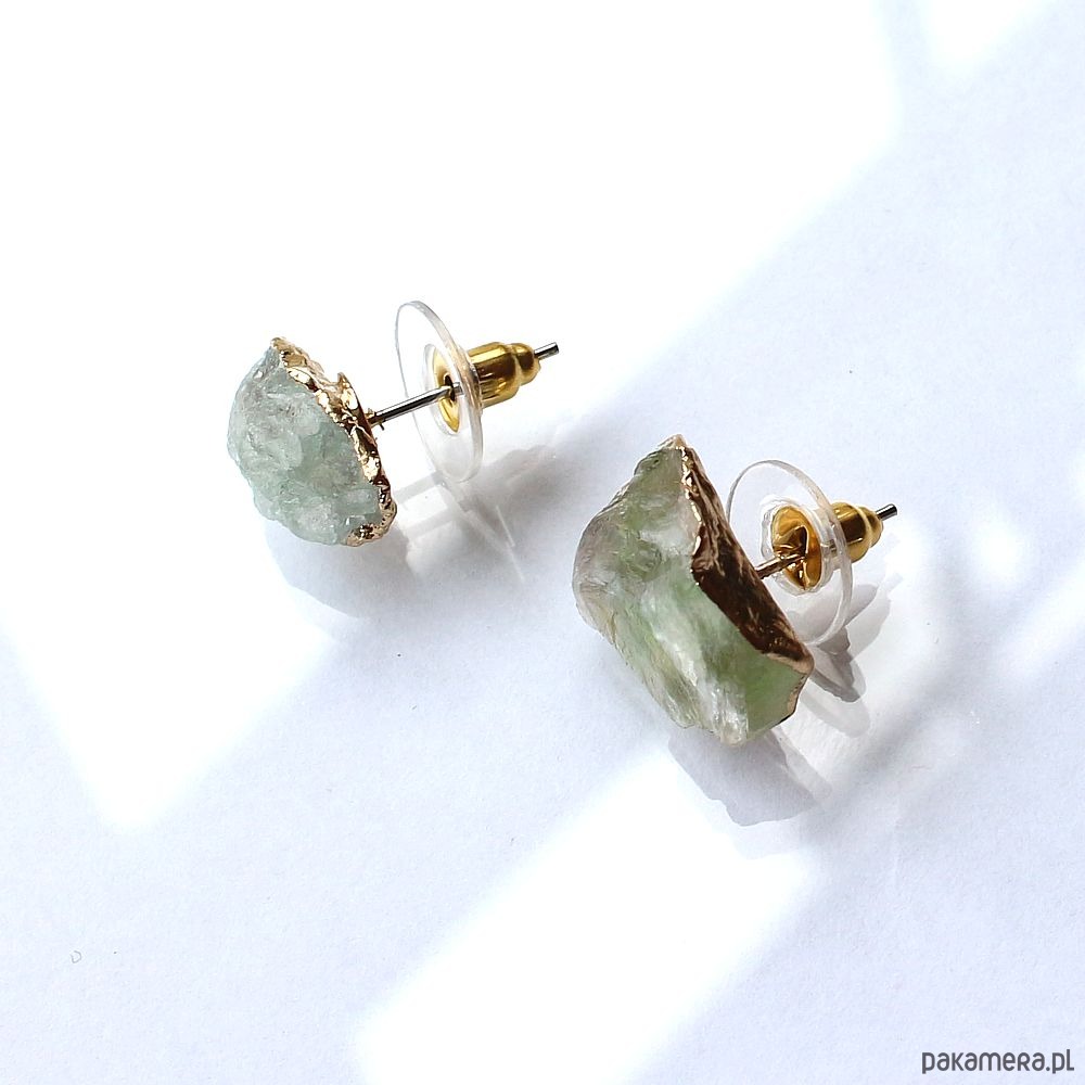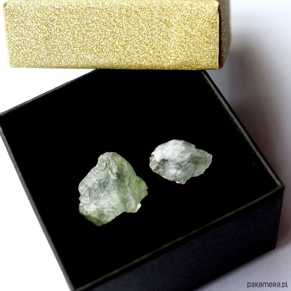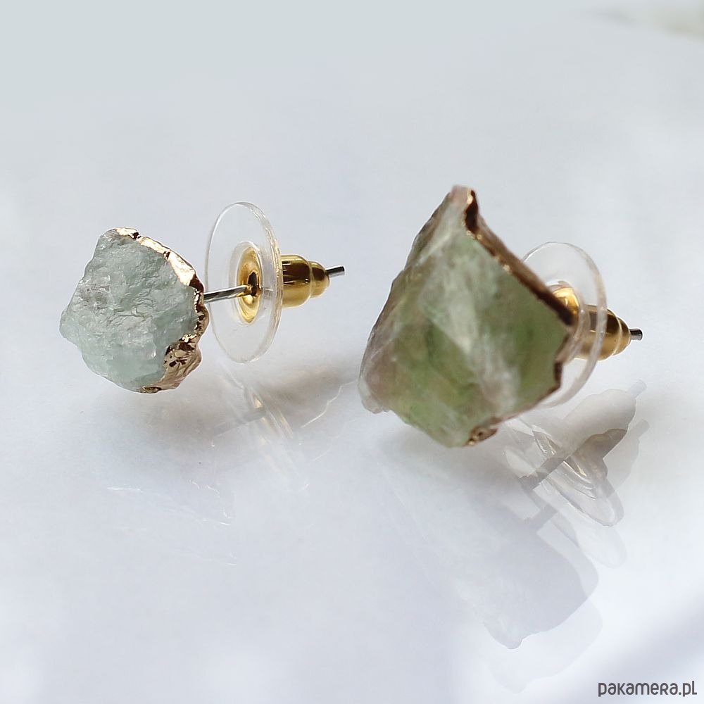 Fluoryt surowy kolczyki pozłacane asymetryczne
