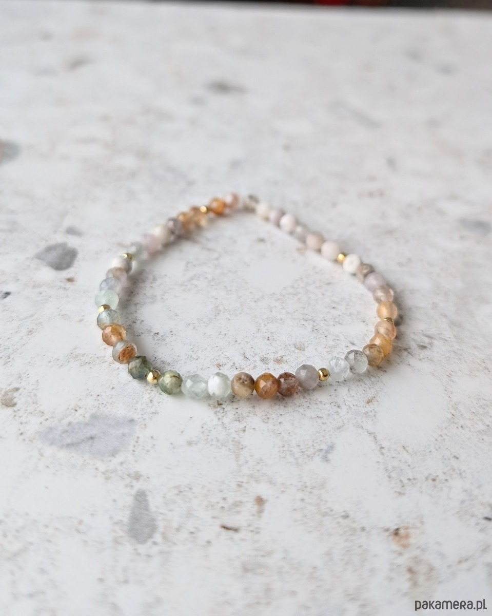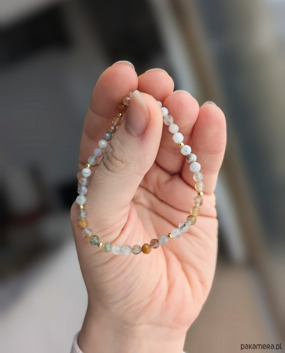 - Niepowtarzalne kamienie naturalne - unikalne, zmienne w zależności od światła, wyselekcjonowane i skomponowane tak, aby mimo różnic w odcieniu i kolorze zachować estetykę bransoletki.