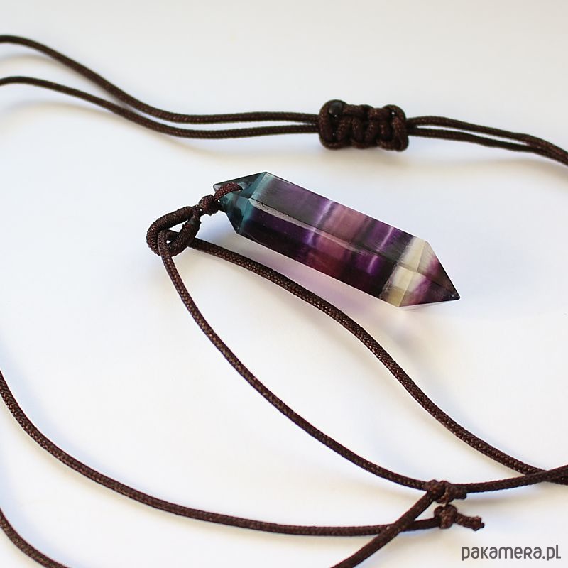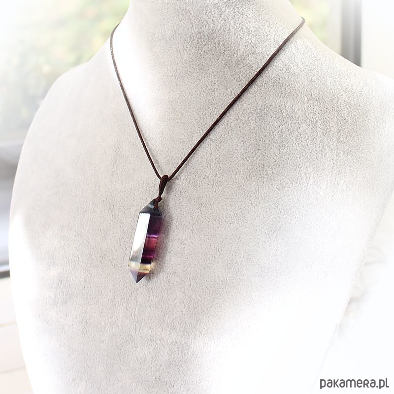 Energetyczny wisior z fluorytem, wspierający harmonizację czakry korony i podstawy.