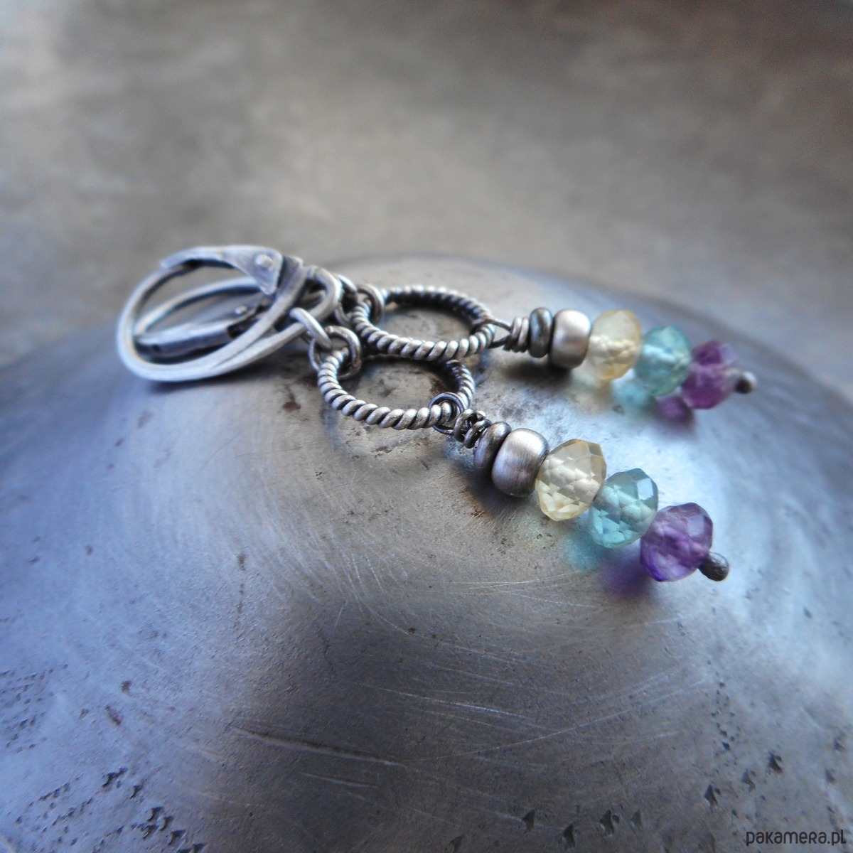 Wyjątkowe kolczyki z kamieni naturalnych i szlachetnego srebra; klasyczne wiszące, nie obciążające ucha, w lekkich, pastelowych kolorach. Do kompletu polecam bransoletkę dostępną w mojej galerii.