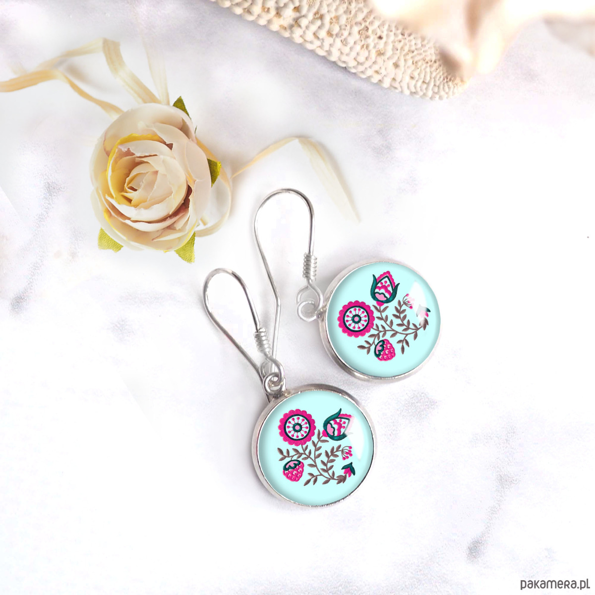 Delikatne, śliczne kolczyki wiszące z oryginalną grafiką artystyczną, umieszczoną pod wypukłym szkłem, w oprawie ze stali chirurgicznej. Grafika jest najwyższej jakości. Bigle wykonane ze srebra próby 0,925. Szkła z grafiką są niepowtarzalne, wykonane ręcznie według mojego projektu, z dbałością o każdy detal, dlatego biżuteria ta jest jedyna w swoim rodzaju i niespotykana.