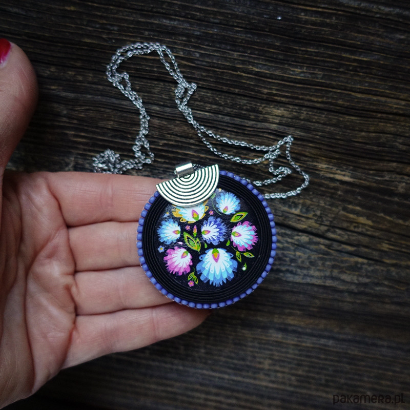 Folkowy wisior soutache z łowickim motywem