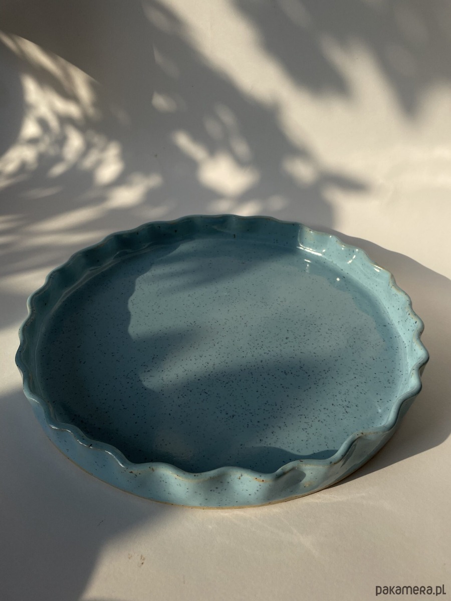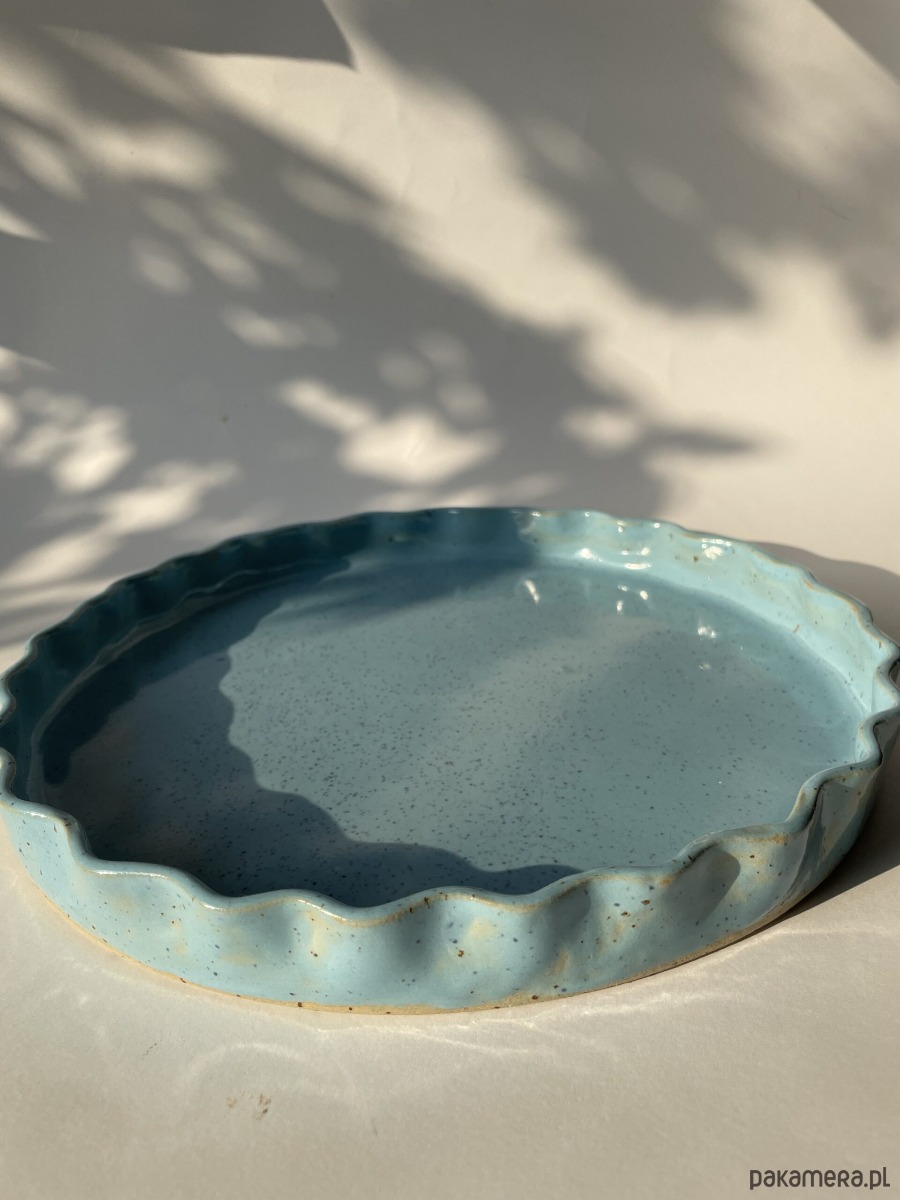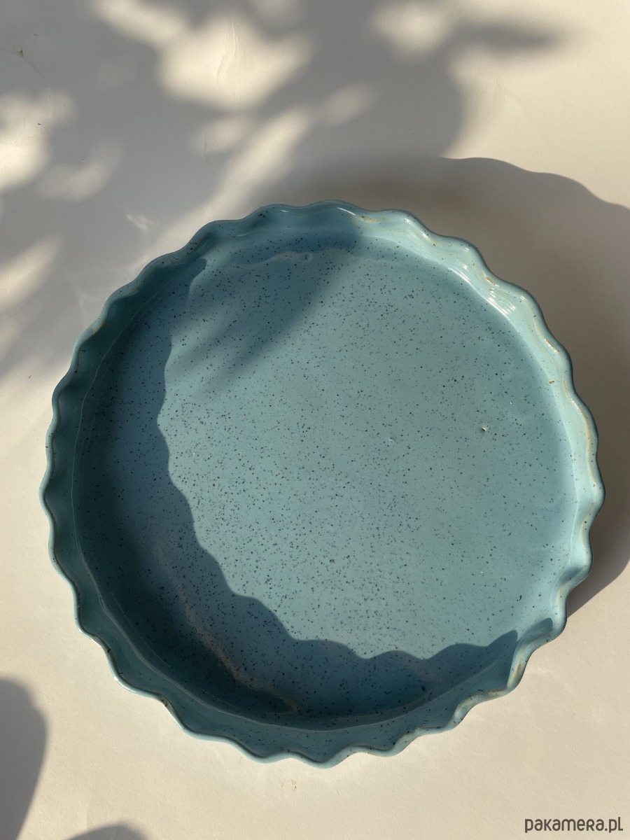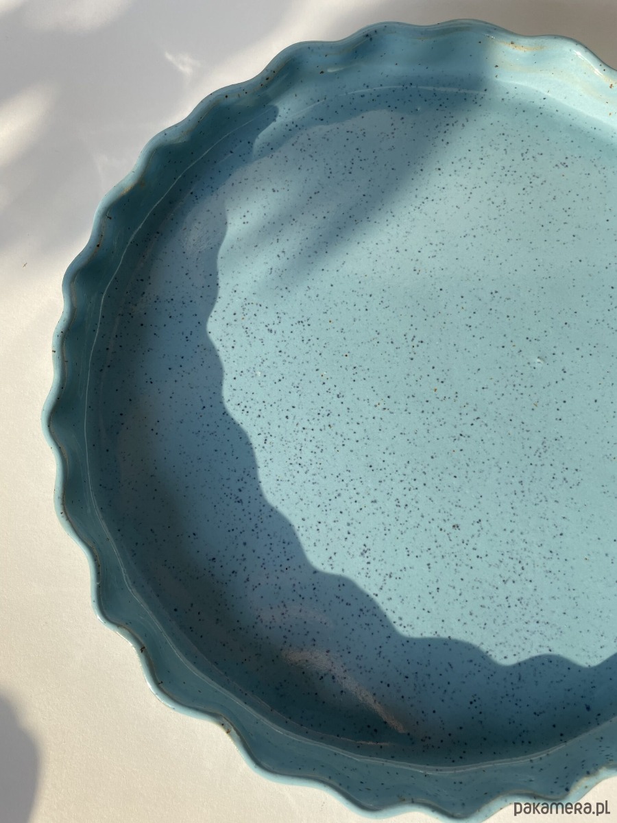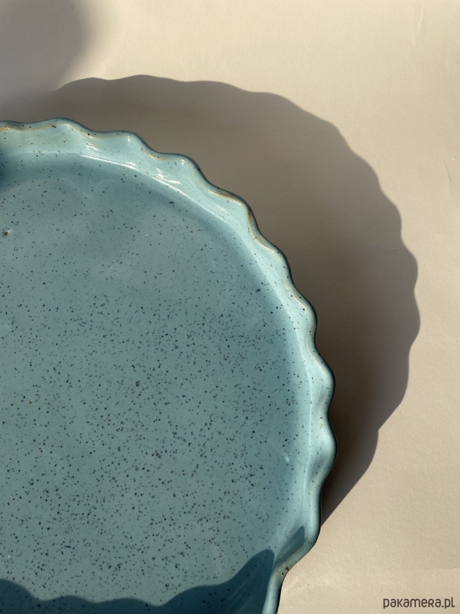 Foremka na tartę w kolorze błękitnym z delikatnymi kropkami. Nadaje się do zapiekania oraz do podawania na ciepło i zimno.