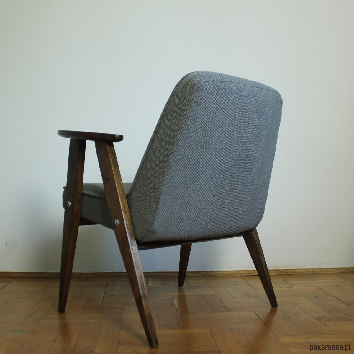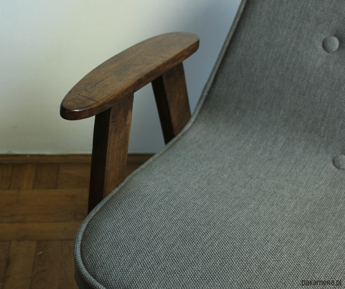 Fotel 366 Chierowski lata 60 PRL. Szara tapicerka orzechowe drewno
