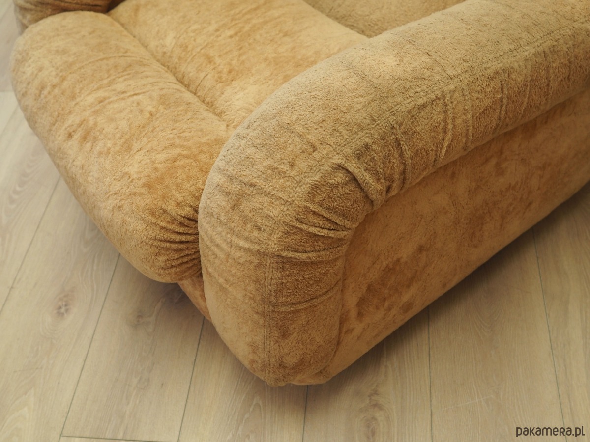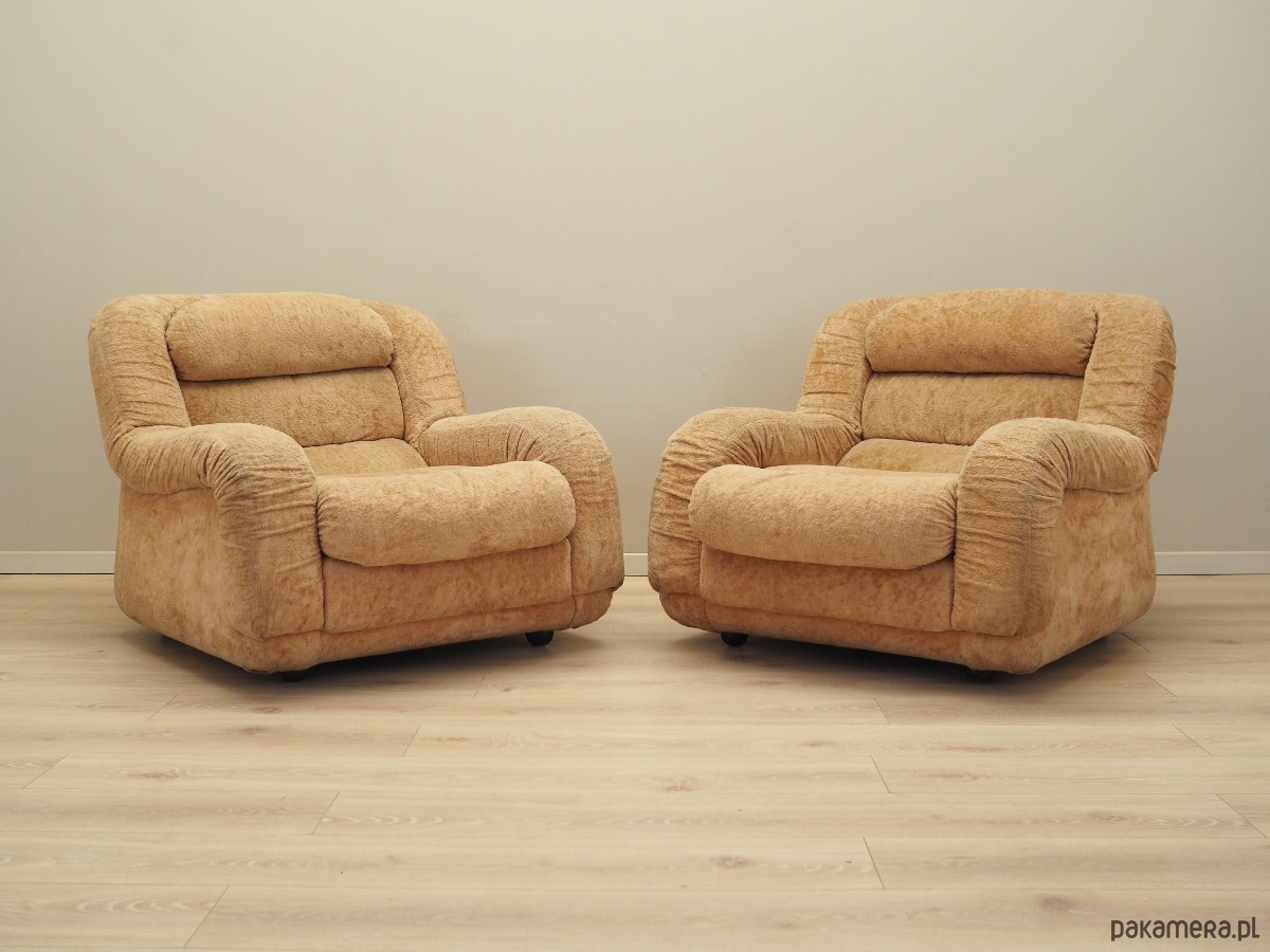 Fotel pokryty jest oryginalną, wysokiej jakości tkaniną w kolorze beżowym. Dostępne dwie sztuki. Cena dotyczy jednej sztuki.