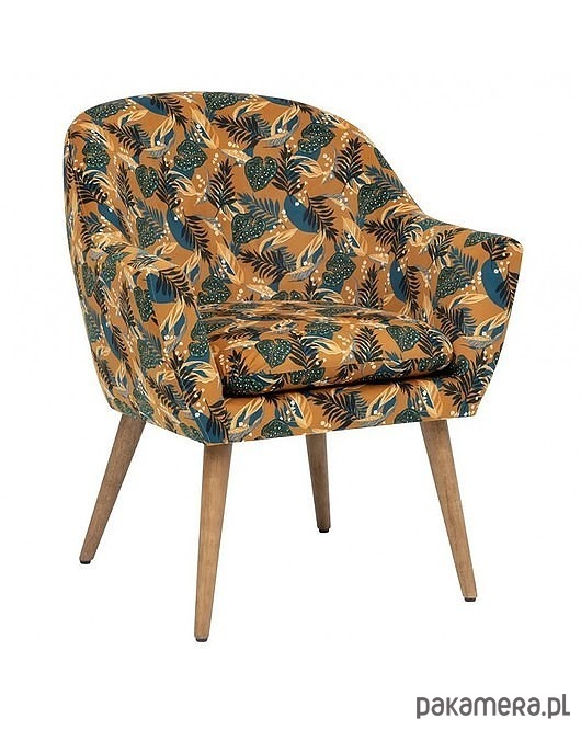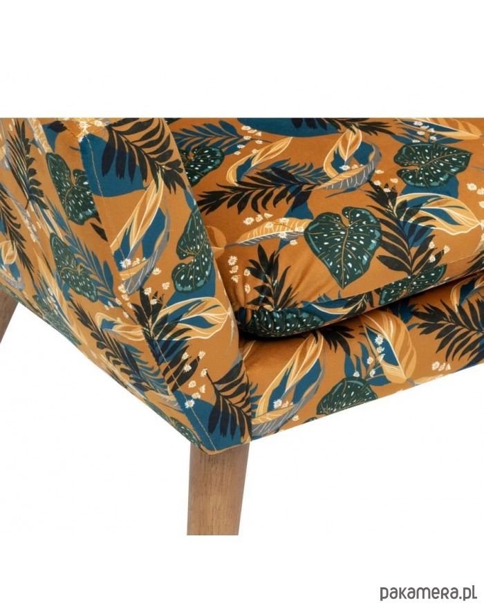 Fotel w stylu retro. Konstrukcja raz nóżki zostały wykonane z drewna kauczukowego. Tapicerka aksamitna. Nóżki w kolorze orzechowym.