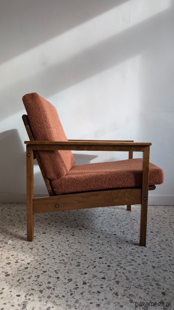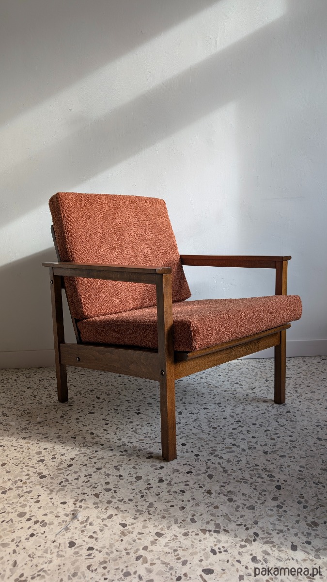 Fotel klubowy, skandynawski design z polskiego podwórka, lata 60.XX wieku.