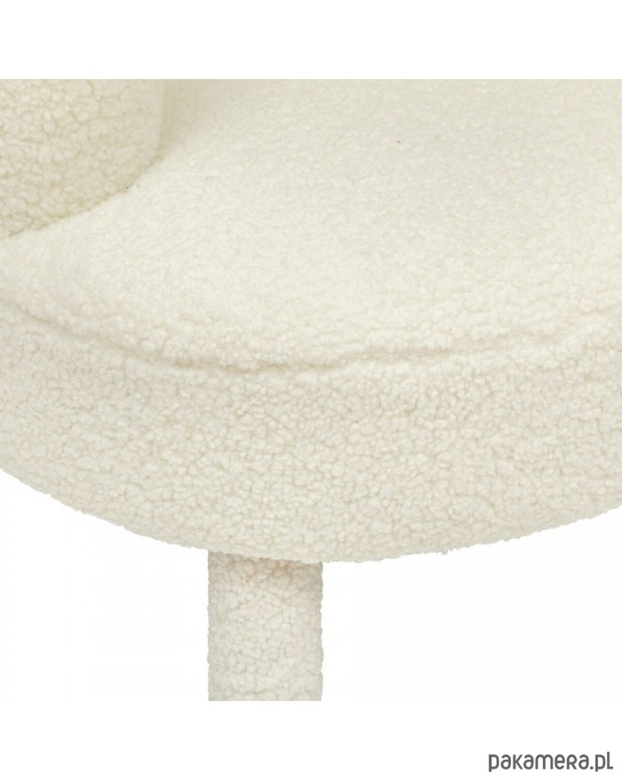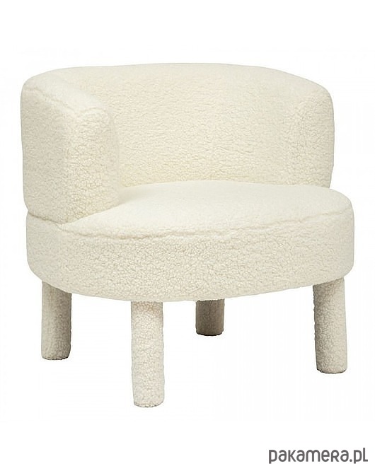 Wyprodukowany z myślą o miłośnikach przytulnych aranżacji. Niezwykle wygodny fotel w tkaninie teddy wykonanej z poliestru (95%) oraz akrylu (5%), która jest miękka i przyjemna w dotyku. Konstrukcja to drewno sosnowe i sklejka. Ociepli wizerunek każdej przestrzeni, nadając nowoczesny styl. Dodatkową ozdobą są cztery złote nogi.