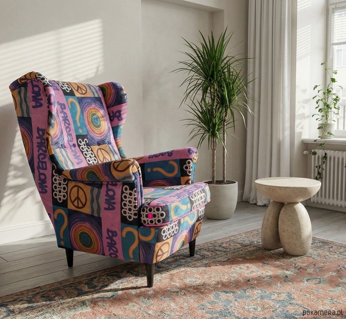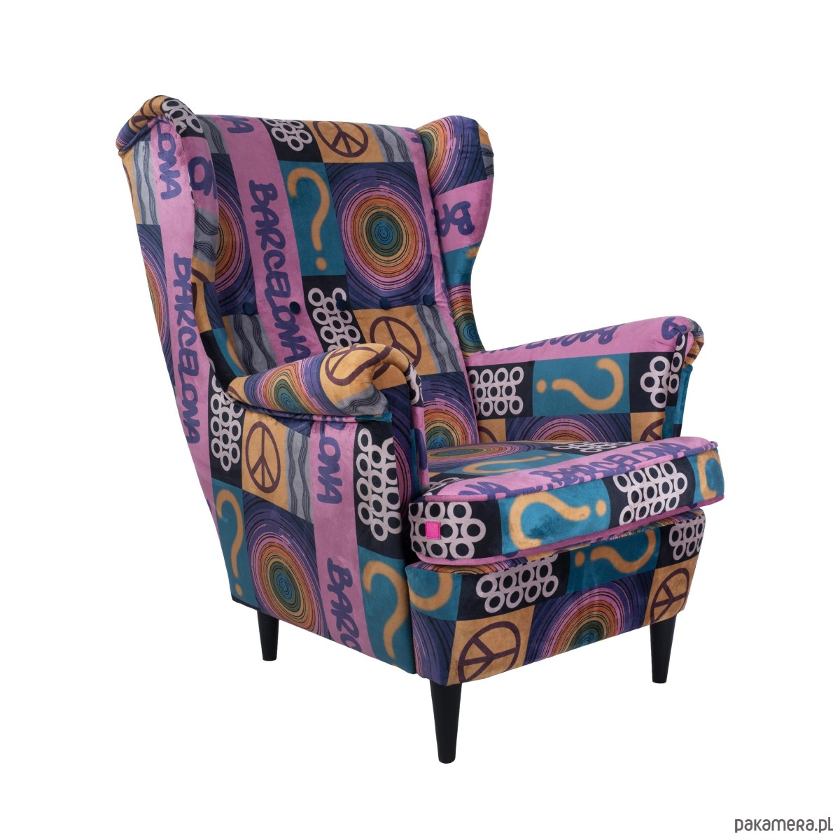 Fotel uszak Barcelona we wzory, kolorowy, patchwork, welurowy
