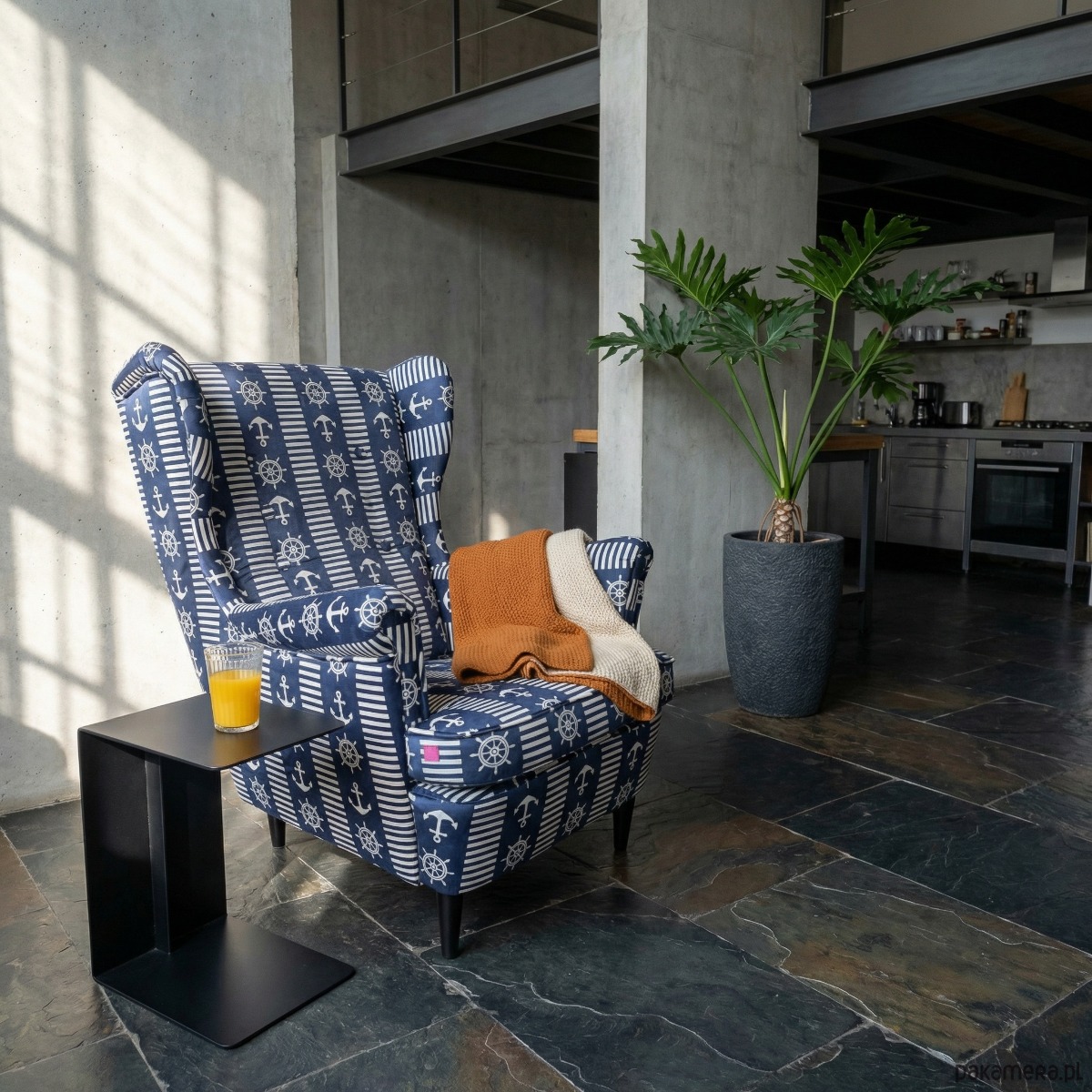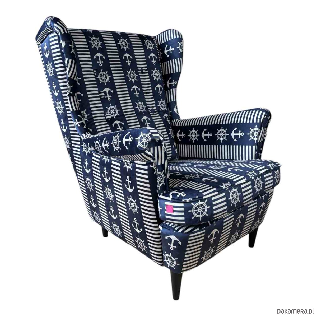 Fotel uszak Kapitan we wzory, welurowy