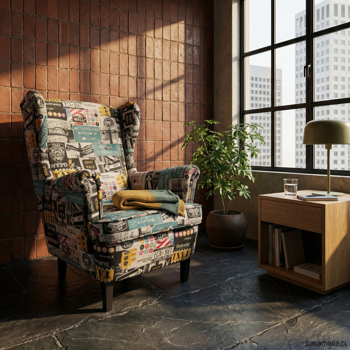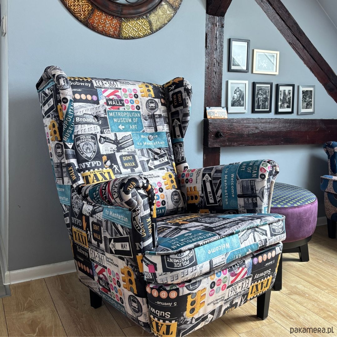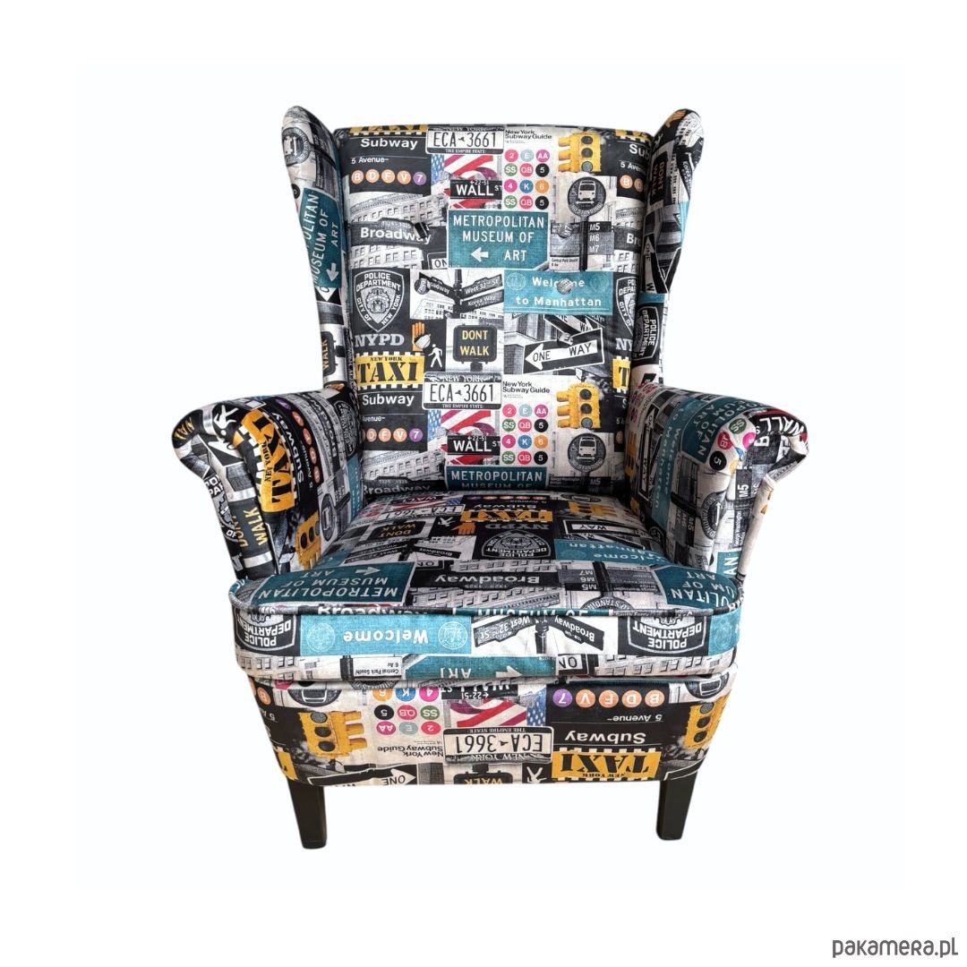 Fotel uszak Nowy Jork we wzory, aksamitny