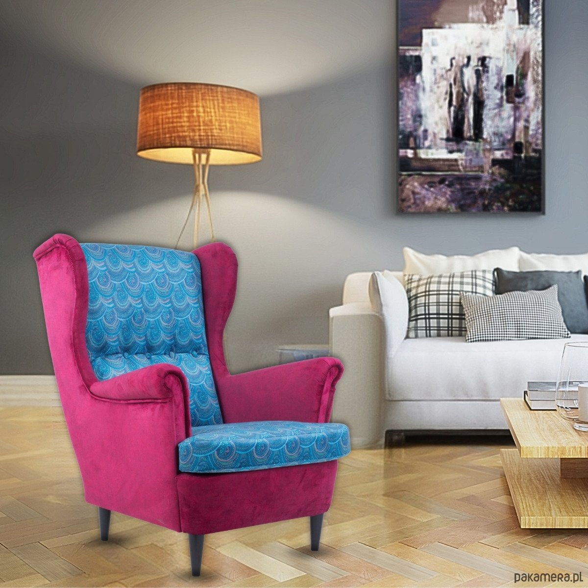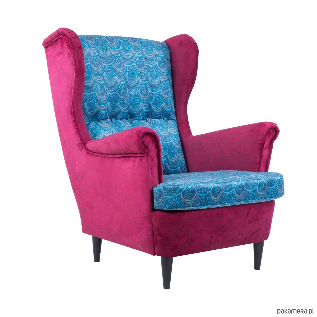 Niezwykły, oryginalny fotel uszak. Jedyny taki na polskim rynku. Piękny, zaprojektowany przez nas wzór na mięsistej tkaninie welurowej. Bardzo elegancki ale jednocześnie w ekstrawaganckim stylu. Nadaje wnętrzu pazura. Pasuje do salonu, sypialni lub gabinetu. Idealnie wpasuje się do każdej aranżacji wnętrza której nada wyjątkowości.