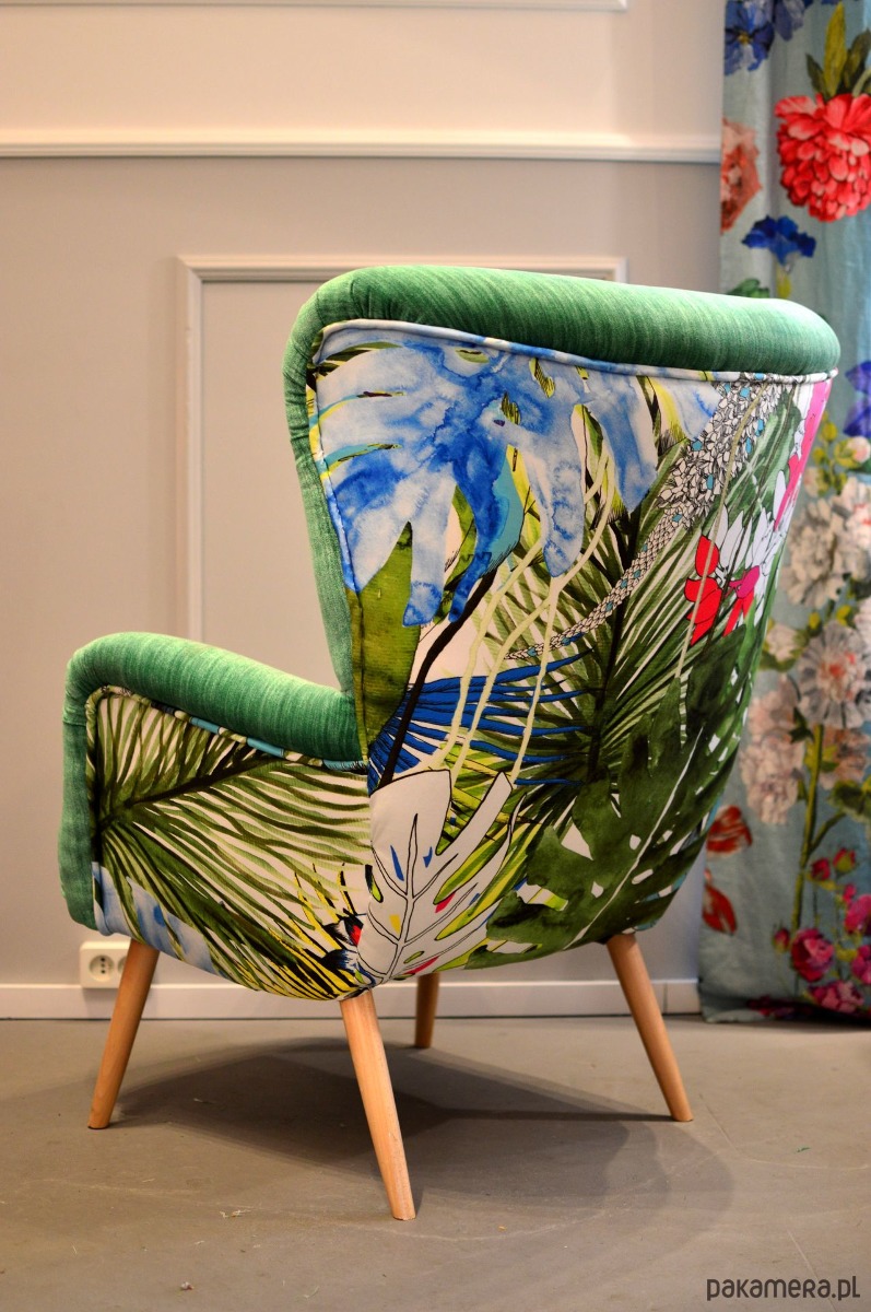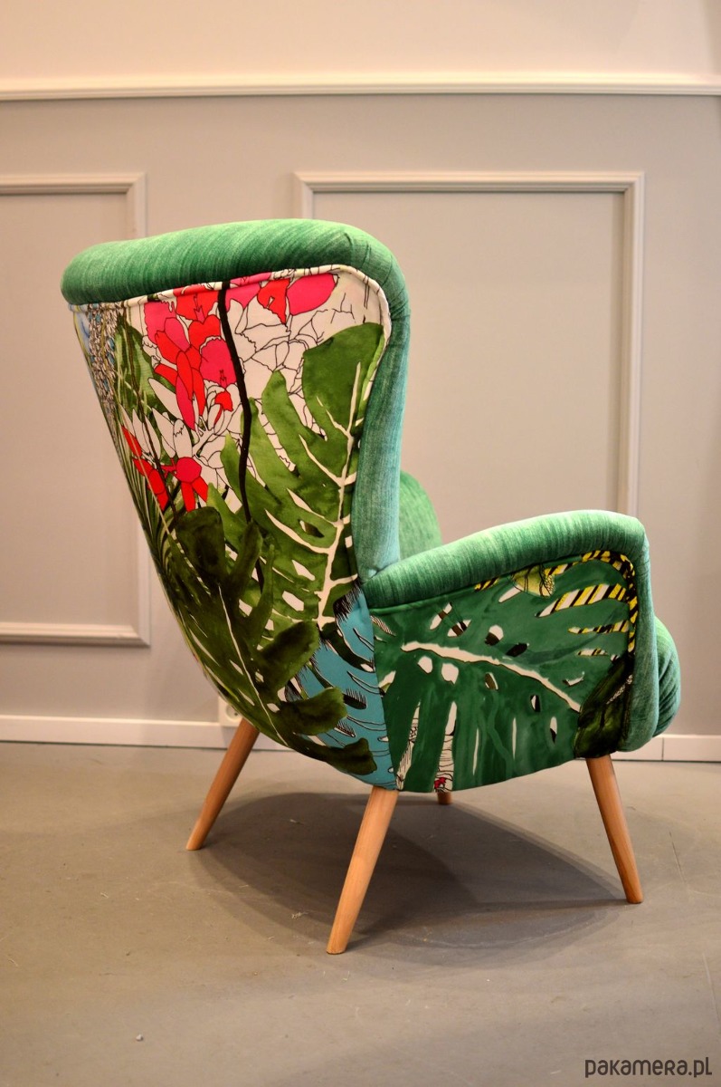 Fotel Uszak Scandi Palma w tropikach