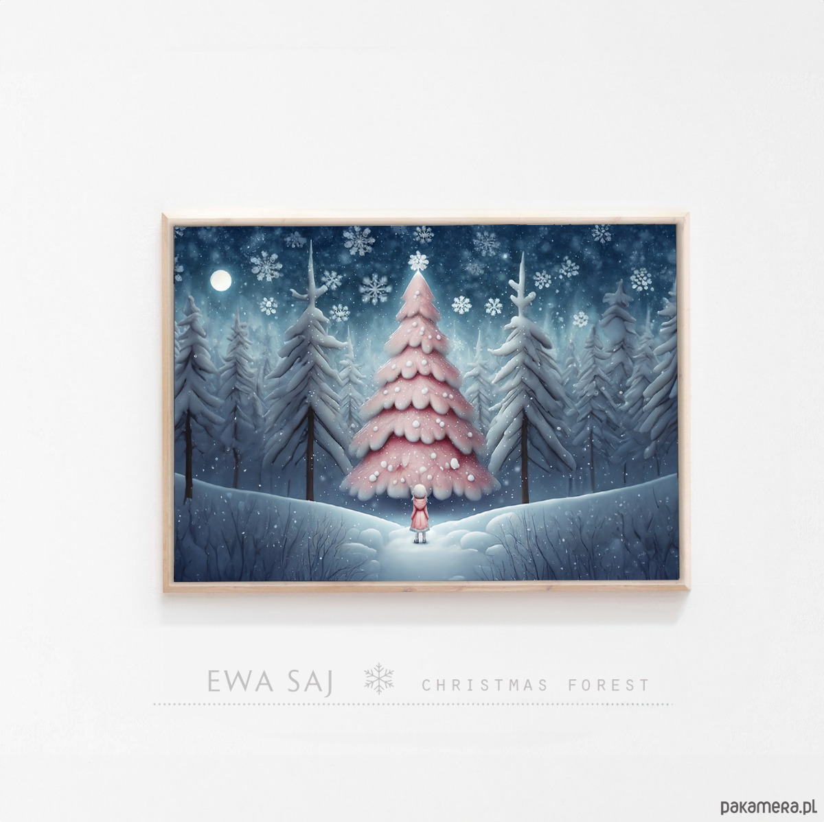 – pozwól, aby magia świąt zagościła w Twoim wnętrzu! Ta subtelna, zimowa autorska grafika przenosi do nastrojowego lasu pełnego śniegu i świątecznego uroku.