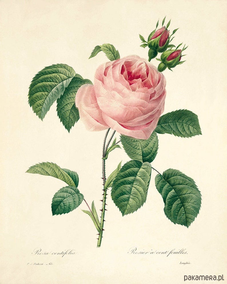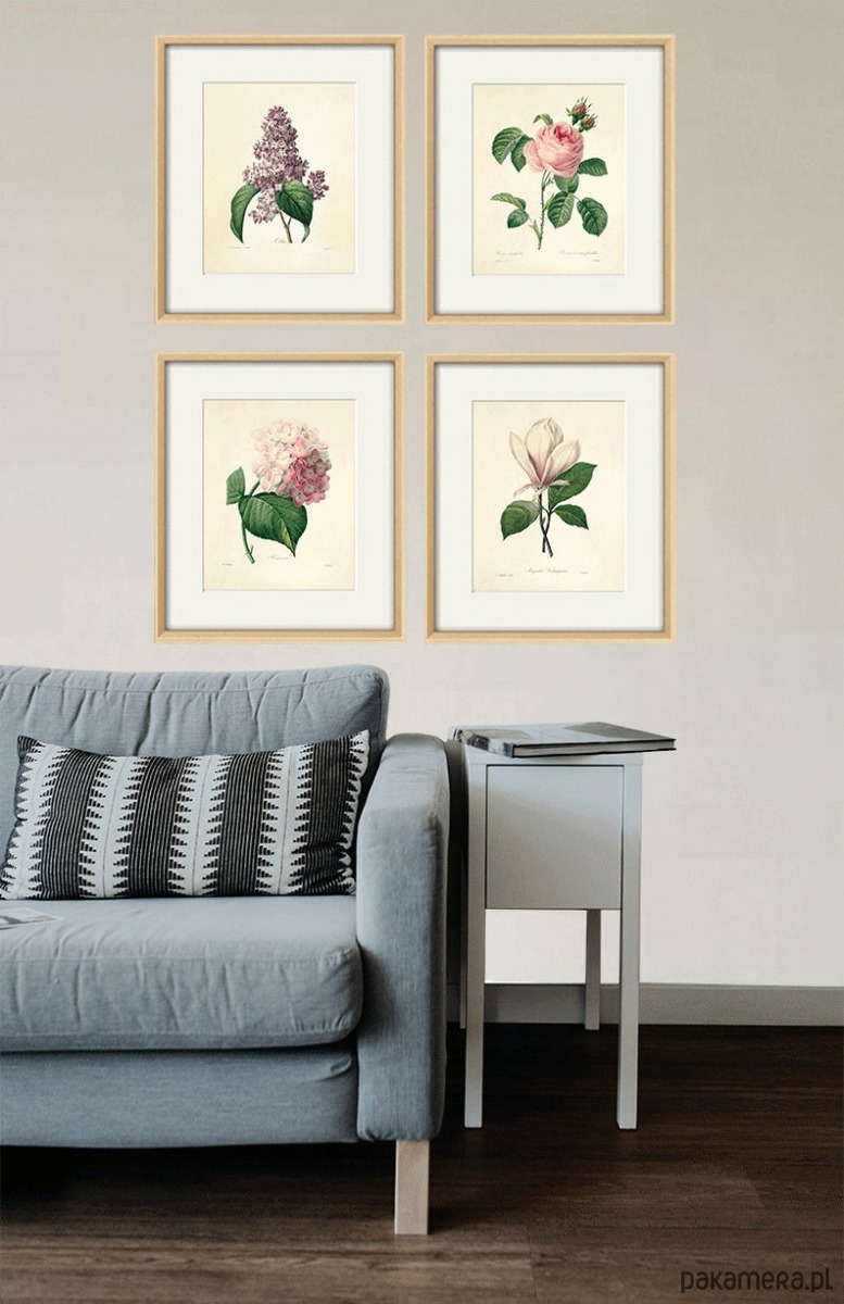 Zestaw 4 grafik w formacie A4 przedstawiających kwiaty. Autorstwa Pierre-Joseph Redoute (1759-1840) Nadwornego malarza królowej Marii Antoniny.Wysokiej jakości reprint oryginału z XIX wieku.