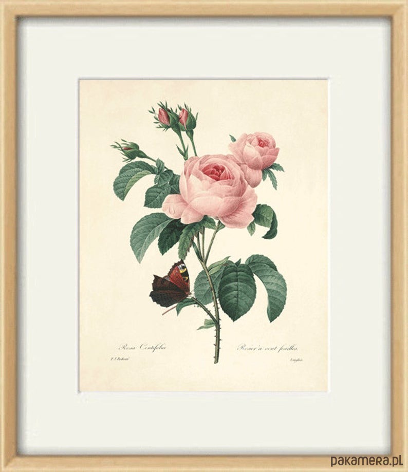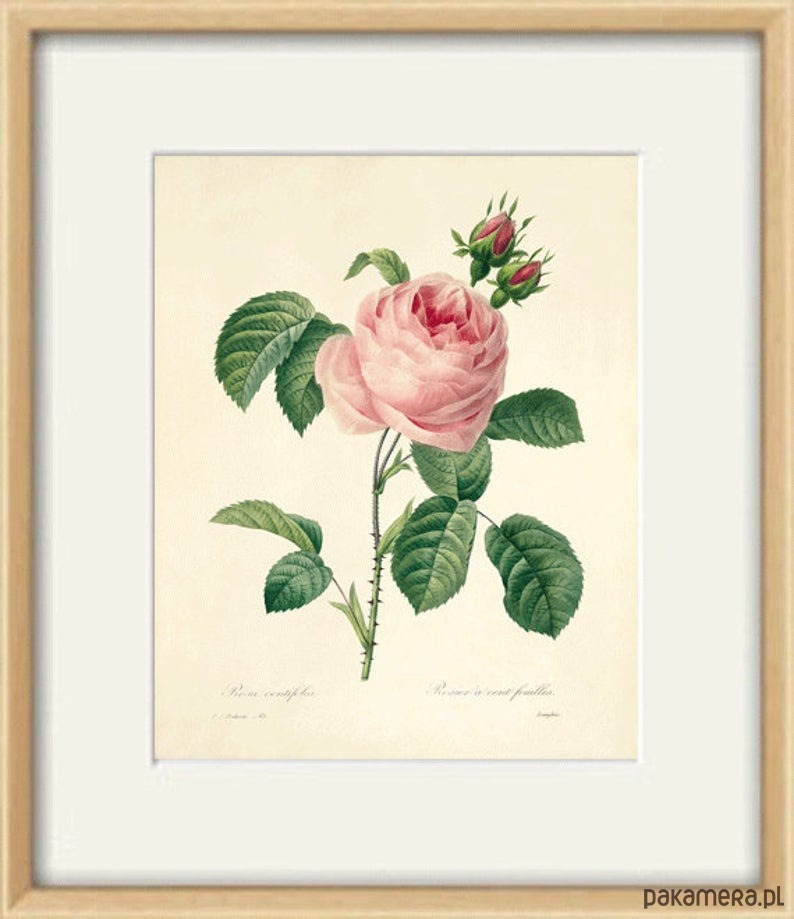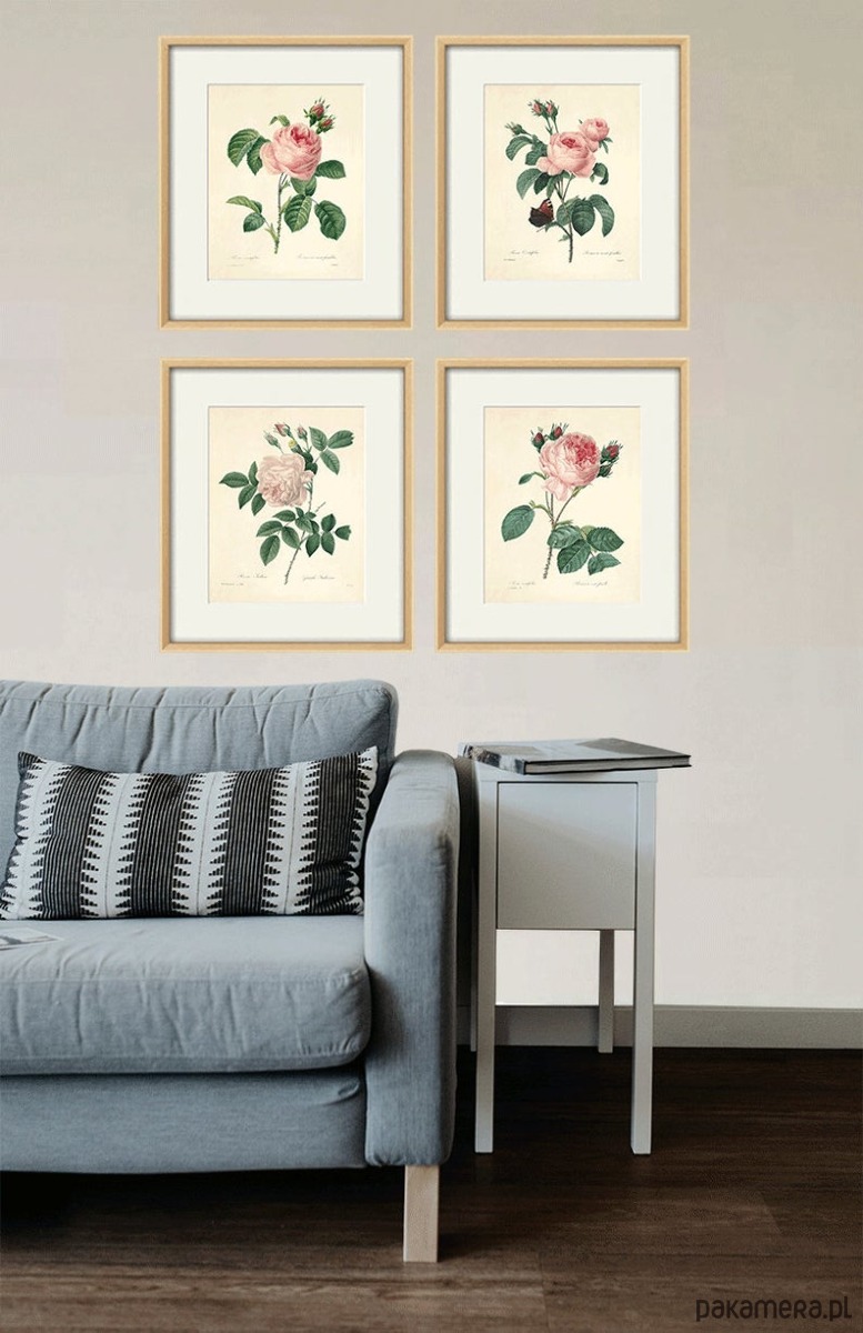 Zestaw 4 grafik w formacie A4 przedstawiających kwiaty. Autorstwa Pierre-Joseph Redoute (1759-1840) Nadwornego malarza królowej Marii Antoniny.Wysokiej jakości reprint oryginału z XIX wieku.