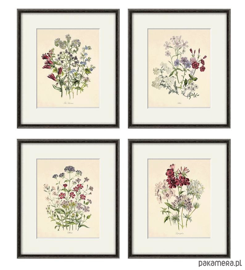 Zestaw 4 grafik w formacie A4 przedstawiających kwiaty..Wysokiej jakości reprint z francuskiego oryginału z XIX wieku.