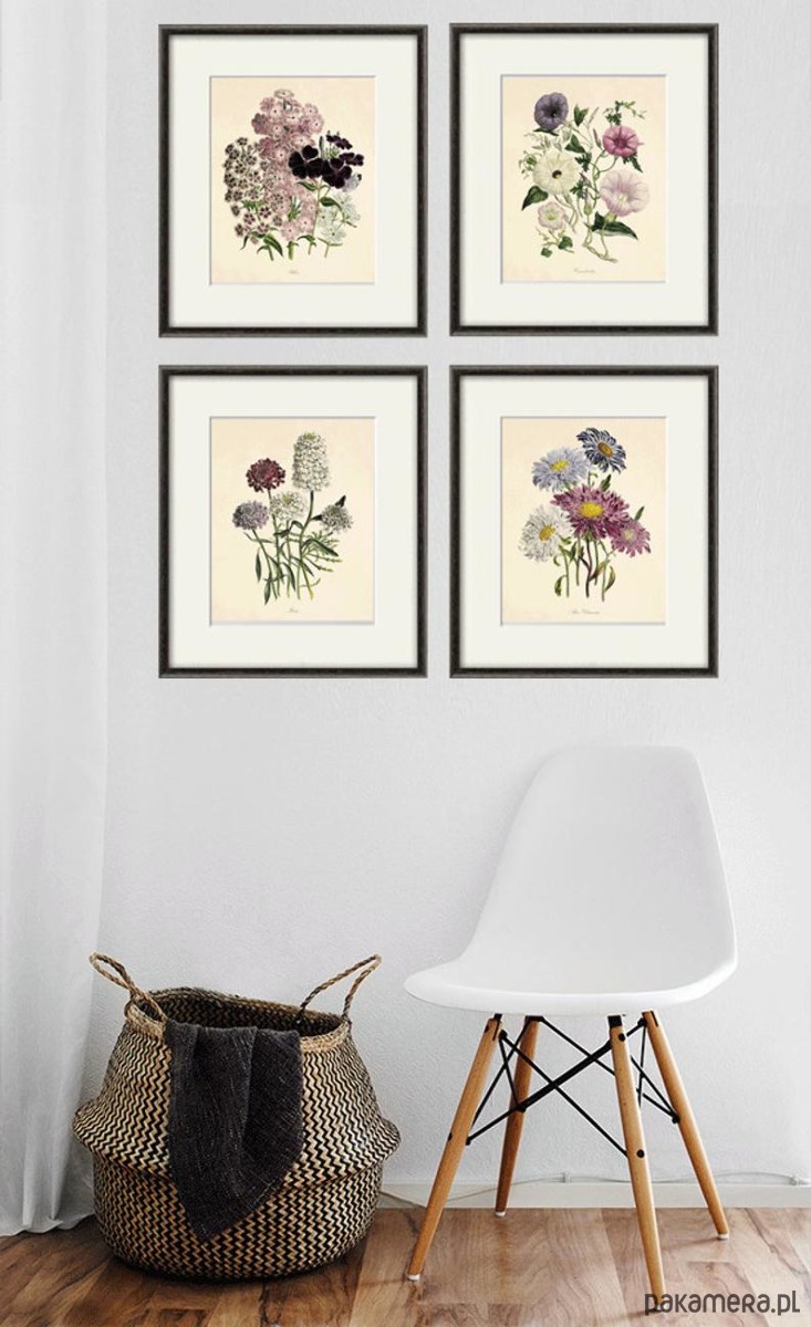 Zestaw 4 grafik w formacie A4 przedstawiających kwiaty polne. Wysokiej jakości reprint z francuskiego oryginału z XIX wieku.