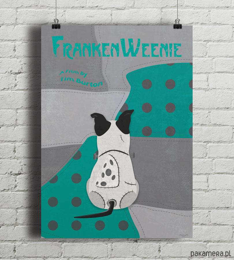 Plakat z autorską grafiką inspirowany filmem filmem Frankenweenie, reż. Tim Burton.